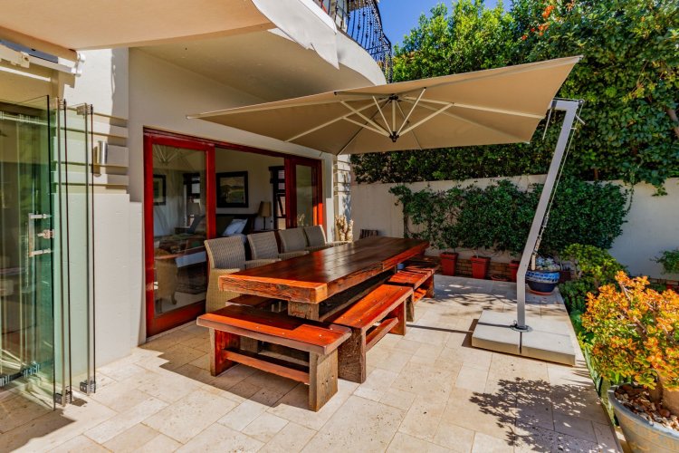 Perfectly situated this home features an airy, open-plan family room and dining area leading to an indoor braai area. Frameless stack doors effortlessly transform the indoor braai area into a sheltered outdoor experience, perfect for entertaining on the patio amidst the sprawling garden. The modern kitchen is equipped with ample storage, a centre island, and a spacious scullery. Two en-suite bedrooms on the ground level offer direct outdoor access, complemented by a guest bathroom.