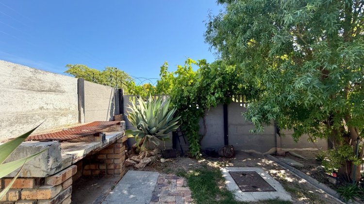 This freestanding corner home presents an exciting opportunity for those looking to transform a solid property into their dream home. Offering generous space and excellent potential, it’s the perfect fixer-upper for anyone with a creative vision. The welcoming lounge features a built-in fireplace, creating a cozy atmosphere that flows into a spacious kitchen with ample storage and room to design your ideal culinary space. Three well-sized bedrooms with built-in cupboards provide comfort and functionality, while additional features include an automated single garage, storeroom, outside toilet, and covered parking. The fully enclosed yard, complete with an electric gate, ensures privacy and security, while the outdoor braai area is ideal for entertaining family and friends. With a bit of modernization and personal touch, this property can easily be transformed into a beautiful family home. Conveniently located near the N2 and essential amenities, it combines space, accessibility, and excellent value for those ready to invest in its potential