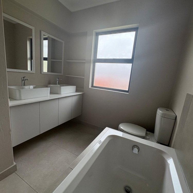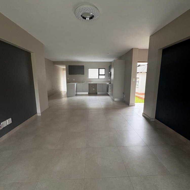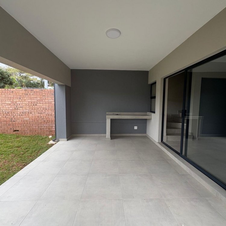 This newly built double storey home located in a secure estate close to Belladonna Spar offers 3 Bedrooms, 2 bathrooms with quality modern finishes and an open plan layout that seamlessly connects the kitchen, dining and Living area opening onto a private covered patio and garden. Communal pool in estate