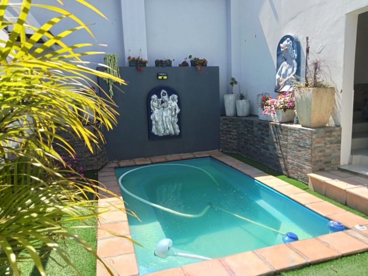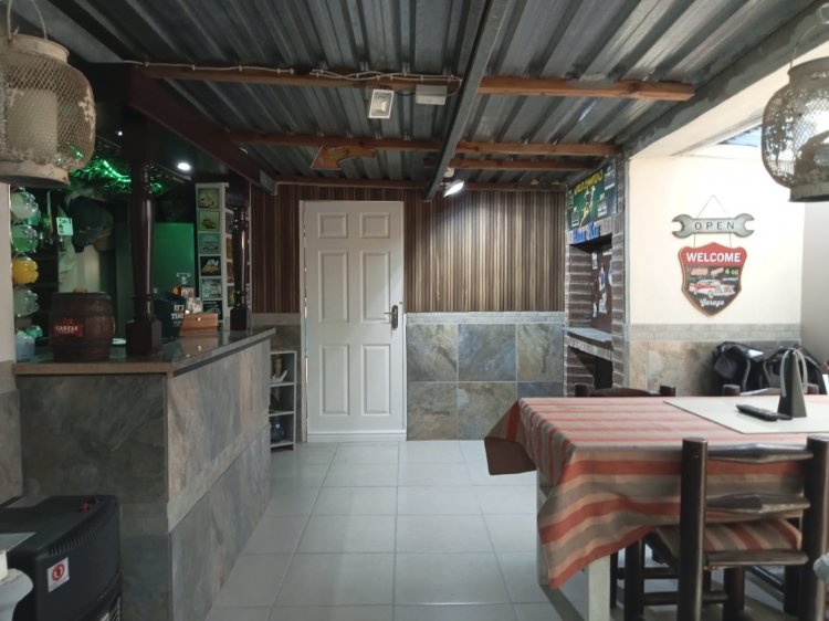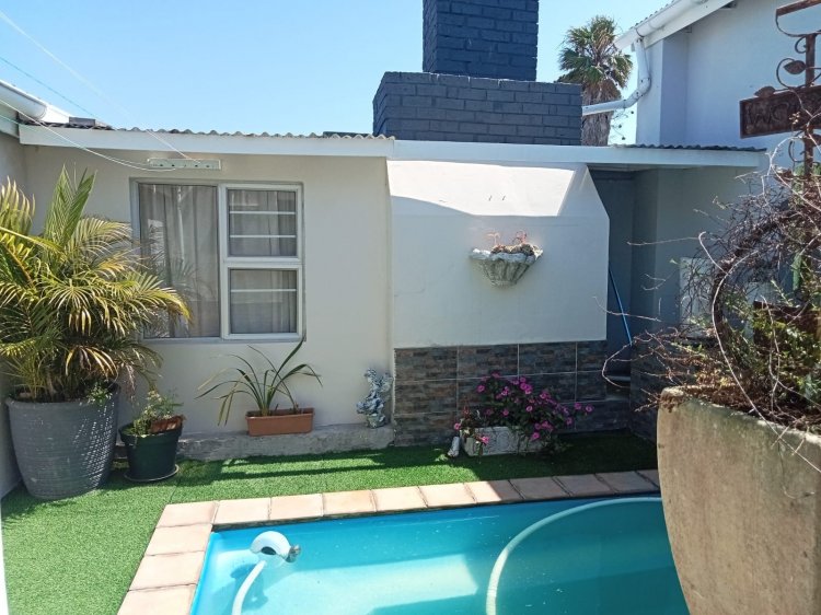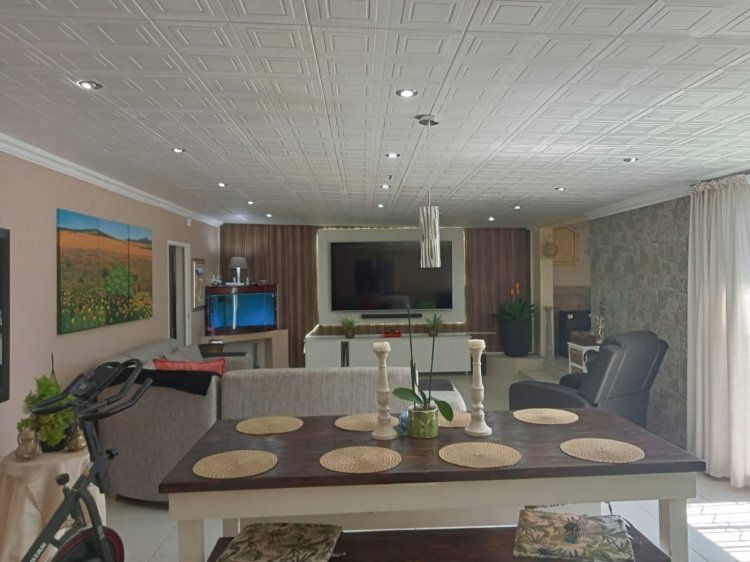 Designed for entertaining, the home offers a huge indoor entertainment area with a built-in braai and bar, seamlessly flowing out to a charming swimming pool area, ideal for summer relaxation.