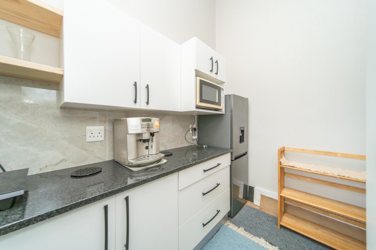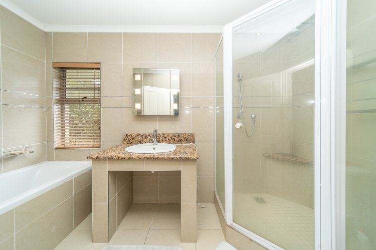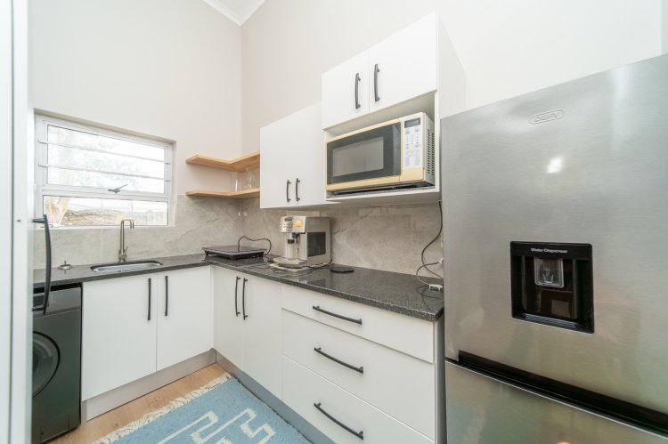 The functional kitchen is equipped with a built-in gas hob and undercounter oven. Down the passage, you’ll find spacious bedrooms and a full family bathroom. The main bedroom boasts a walk-in dressing room and full en-suite bathroom. A bonus feature is the newly built modern flat with separate entrance, perfect for guests, extended family or rental income.