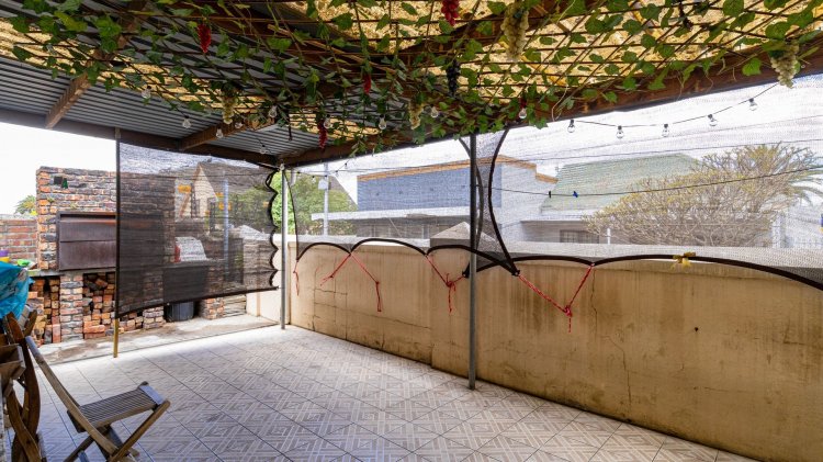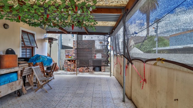 The enclosed kitchen is well-appointed with an under-counter oven, hob, extractor fan, double sink, and is plumbed for an appliance. It offers ample cupboard space and a convenient serving hatch to the living area. A Jetmaster fireplace is the focal point of the spacious living area—perfect for cozy winter evenings. Double doors lead to a covered patio with a built-in braai, creating an ideal space for year-round entertaining. The main bedroom features laminated flooring and an en-suite bathroom with shower, basin, and toilet. Two additional bedrooms, all bedrooms with built-in cupboards, laminated flooring, blinds, and transparent burglar bars, provide comfortable accommodation for family or guests. The family bathroom is generously sized and includes a bath, corner shower, basin, toilet, and extractor fan. Enjoy sunny mornings on the charming front patio—ideal for a quiet cup of tea.
