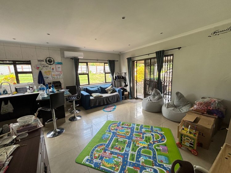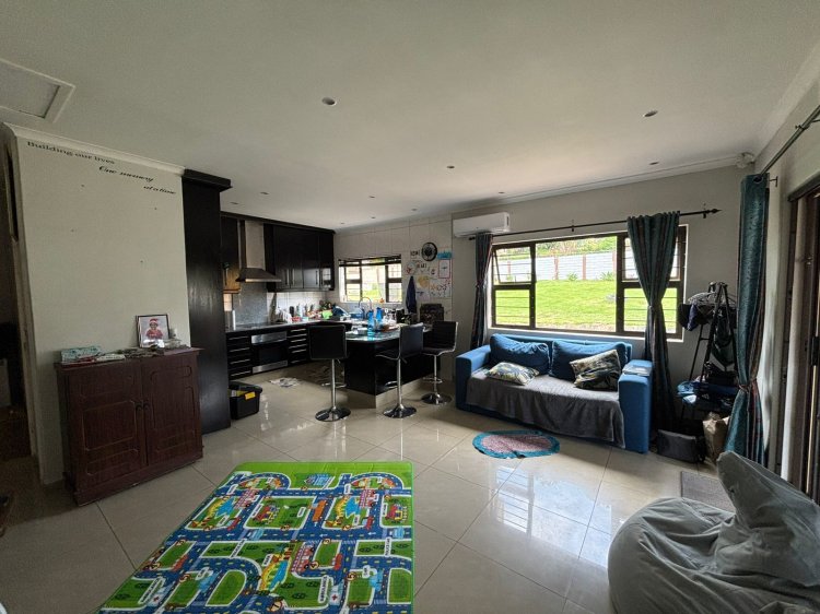 The main house features three well-sized bedrooms and a welcoming open-plan kitchen, lounge, and dining room, creating a natural flow ideal for family living and entertaining. The interiors are fully tiled throughout, offering low-maintenance comfort and a clean, modern feel.