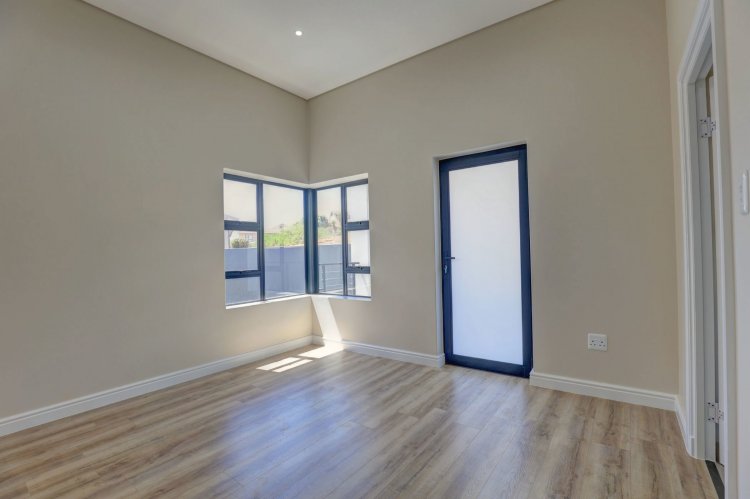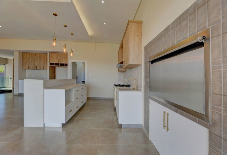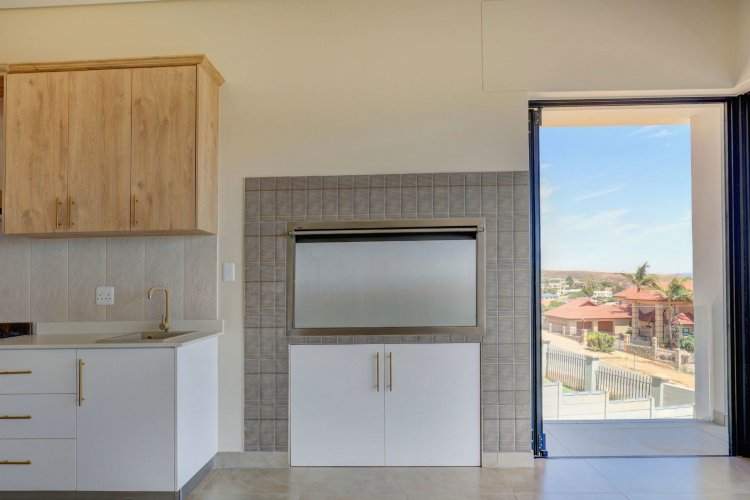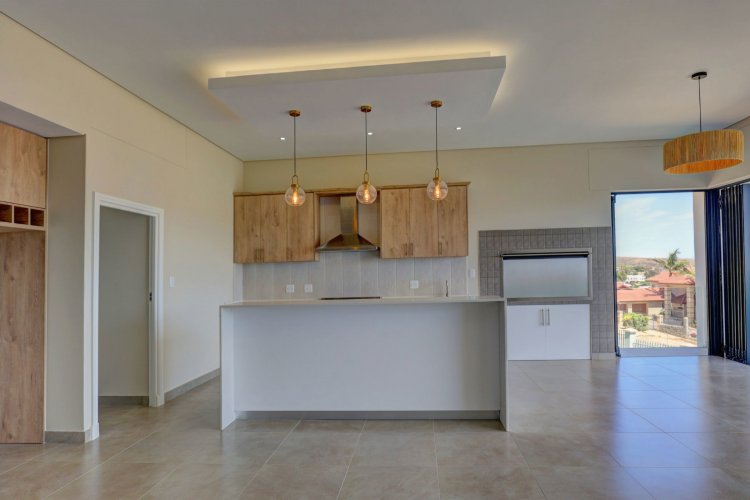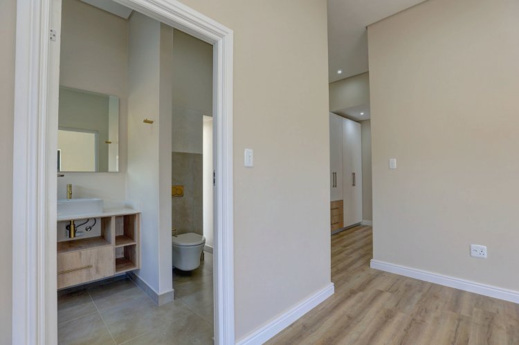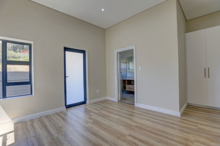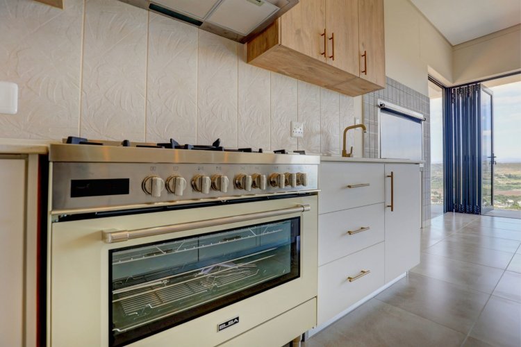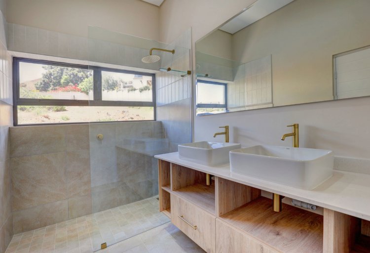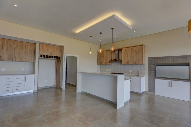 The upper level hosts the beautifully appointed main bedroom, a private retreat boasting panoramic vistas and a luxurious full en-suite bathroom. Thoughtfully designed, the en-suite includes a his-and-hers basin, spacious shower, relaxing bath, and modern finishes that elevate daily living into a spa like experience. A stylish guest toilet is conveniently located on this level, as well as the heart of the home. An open-plan living area that leads onto a generous balcony where views stretch endlessly. The built-in indoor braai ensures year-round entertaining, whether you're hosting guests or enjoying quiet evenings surrounded by scenic beauty.
