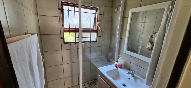 Bathroom with separate shower and basin, plus a separate toilet and basin.