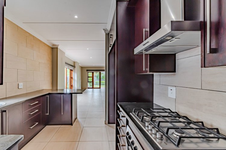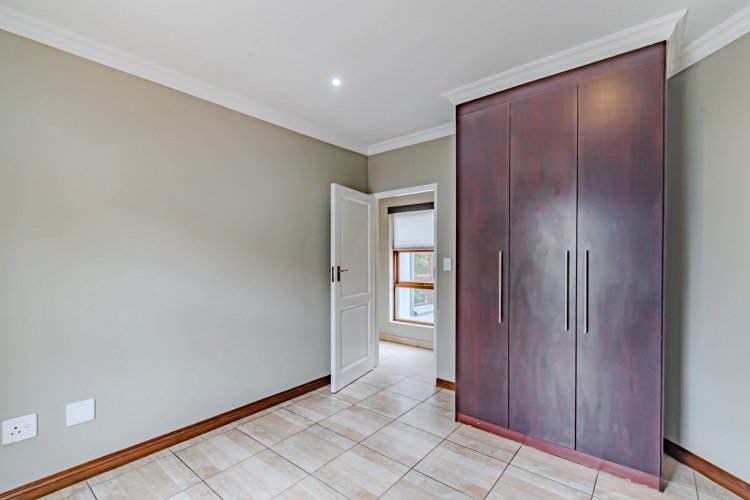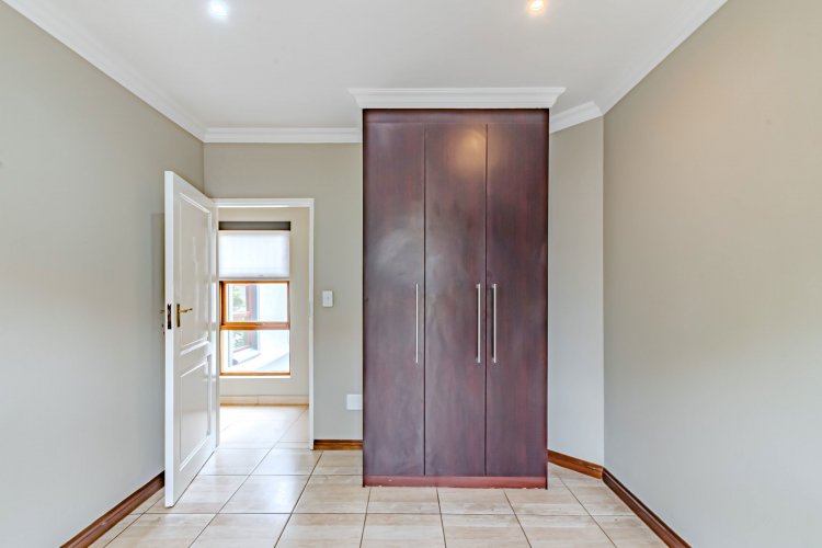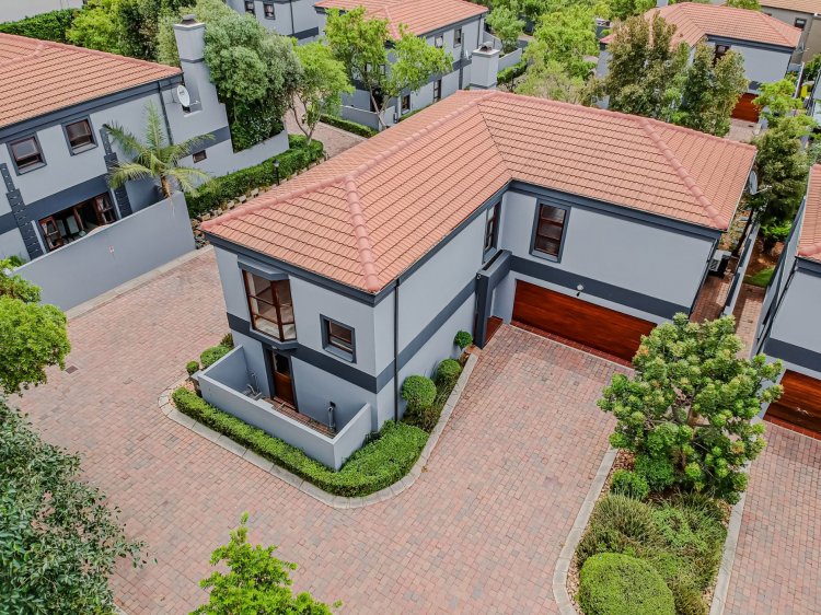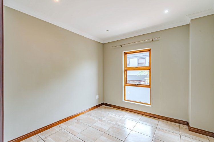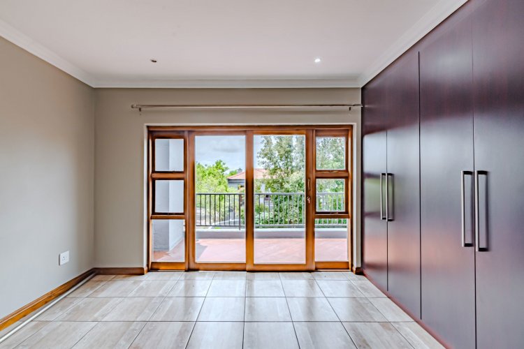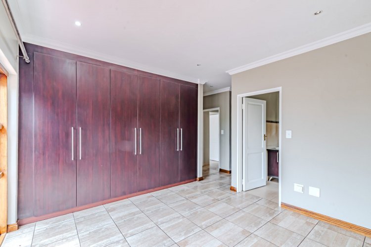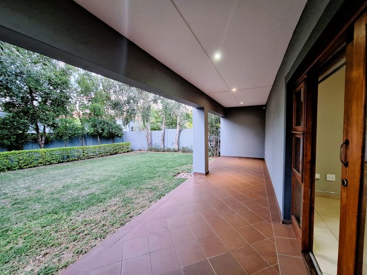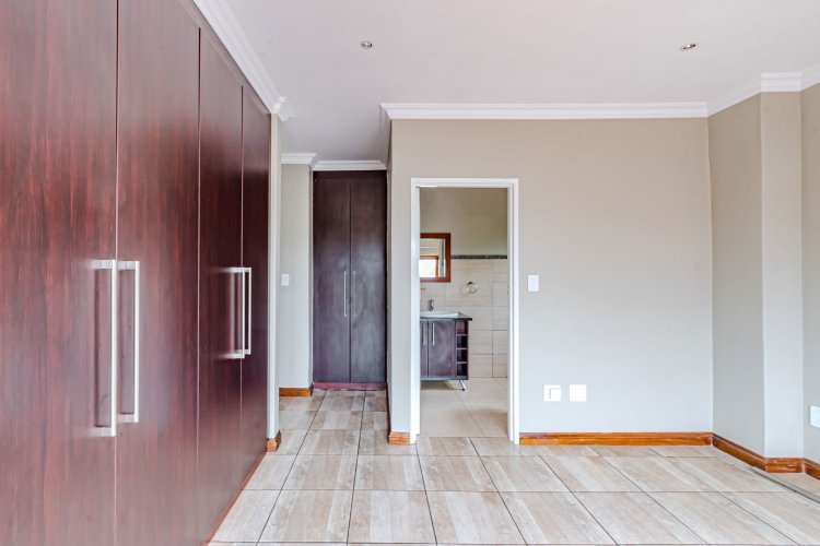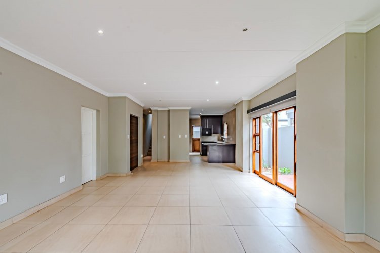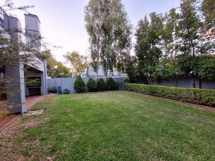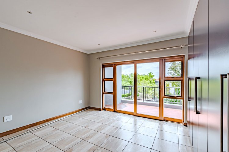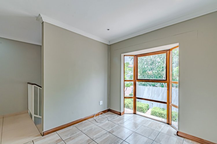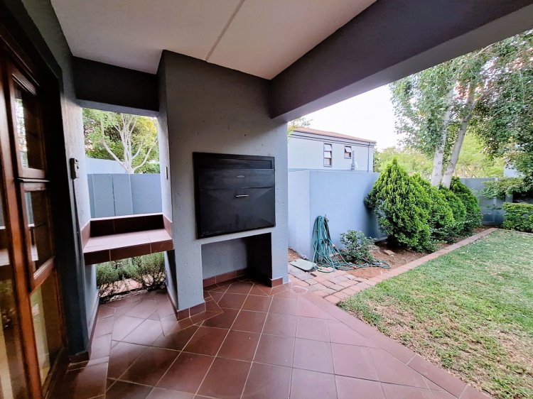 EXCLUSIVE MANDATE: Large 265m2 cluster situated in tranquil cul-de-sac in Midstream with three bedrooms upstairs and a spacious pajama lounge/ office area. Each of the bedrooms are en-suite and the main bedroom has enormous space and a balcony. The main bedroom has an aircon already installed and build-in dressing table. Outside, the covered patio with build-in braai, overlooks a tranquil garden with beautiful trees and abundant birdlife with established trees for privacy. The downstairs area is open plan lounge, dining and kitchen - sliding doors to patio and garden. Ad additional sliding door to an outside sitting area is situated next to the dining room. Kitchen has breakfast nook, space for double door fridge/freezer, gas stove with electrical oven and separate scullery. There is direct access from the living room to the double garage with an extra storage room. The home is popular for rental due to its position close to school and a park with boma, pool and play area is close-by. The komplex levies , includes garden services, house insurance and maintenance of all exterior walls, roof and mutual garden areas. This is a must see as there is little at this price range in Midstream available with this offering and floor size, private garden and well-maintained complex.