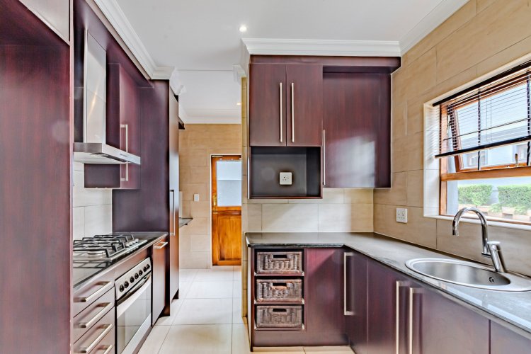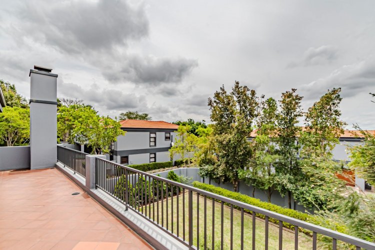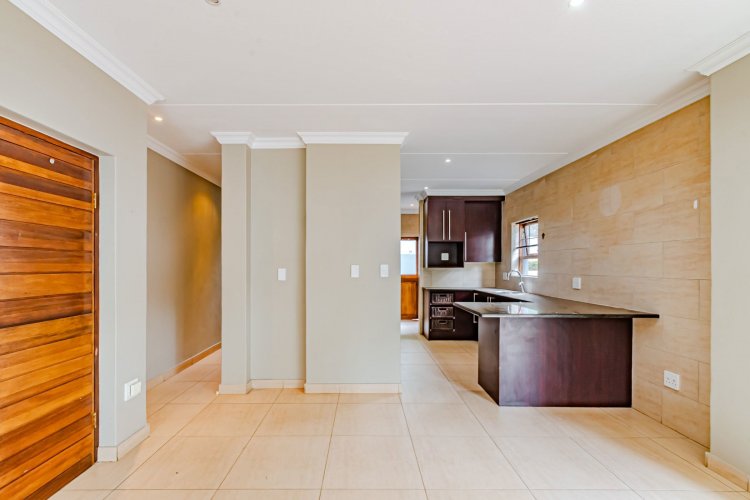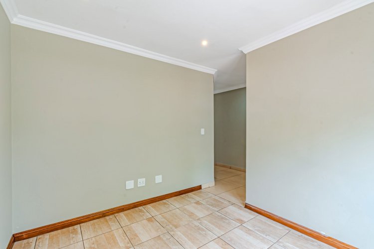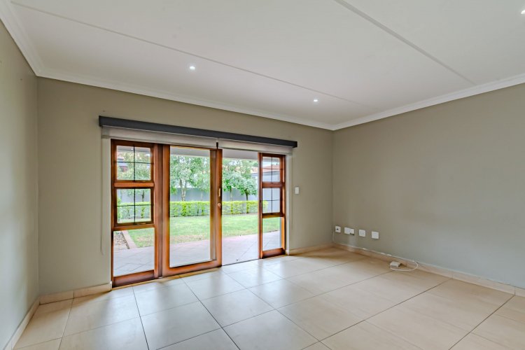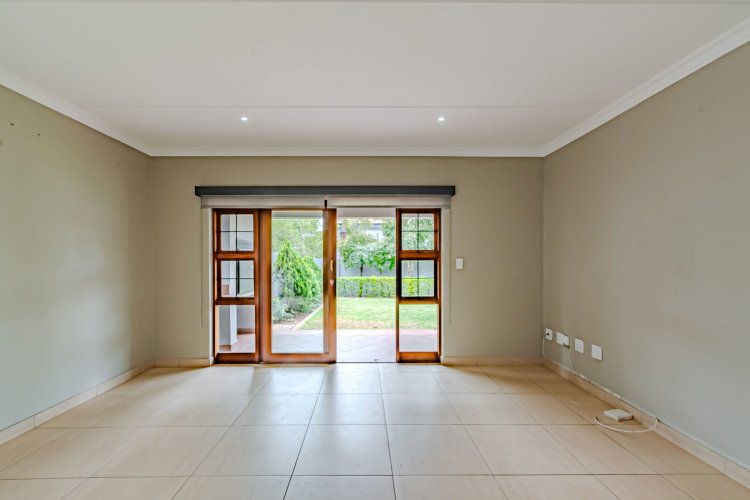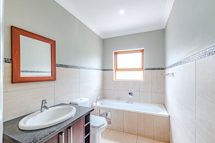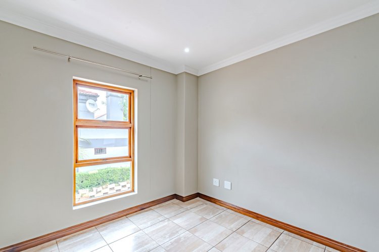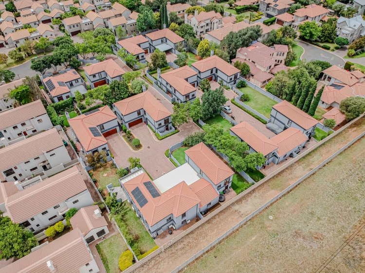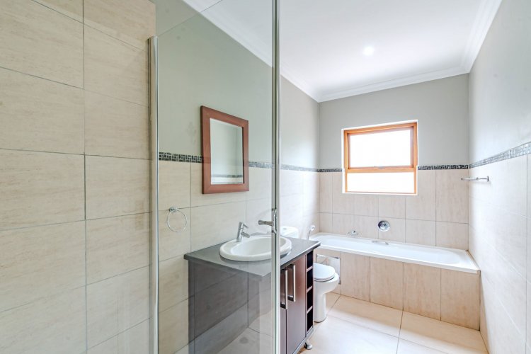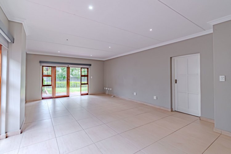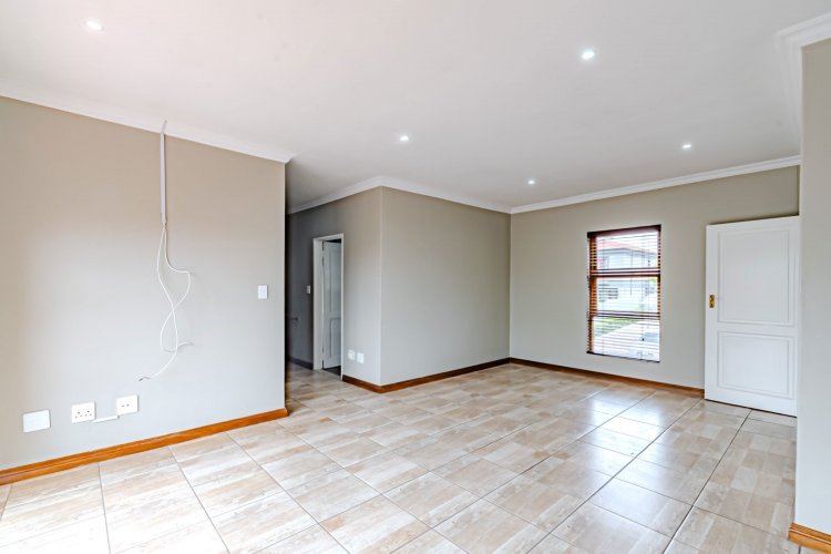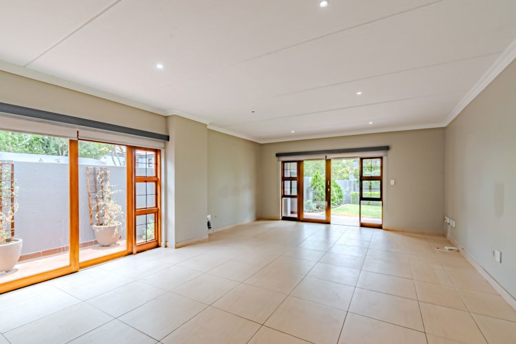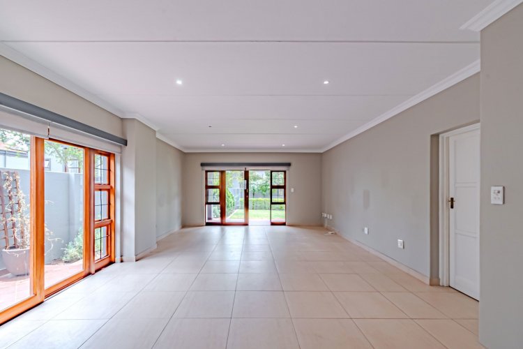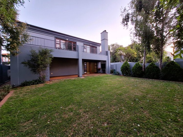 EXCLUSIVE MANDATE: Large 265m2 cluster situated in tranquil cul-de-sac in Midstream with three bedrooms upstairs and a spacious pajama lounge/ office area. Each of the bedrooms are en-suite and the main bedroom has enormous space and a balcony. The main bedroom has an aircon already installed and build-in dressing table. Outside, the covered patio with build-in braai, overlooks a tranquil garden with beautiful trees and abundant birdlife with established trees for privacy. The downstairs area is open plan lounge, dining and kitchen - sliding doors to patio and garden. Ad additional sliding door to an outside sitting area is situated next to the dining room. Kitchen has breakfast nook, space for double door fridge/freezer, gas stove with electrical oven and separate scullery. There is direct access from the living room to the double garage with an extra storage room. The home is popular for rental due to its position close to school and a park with boma, pool and play area is close-by. The komplex levies , includes garden services, house insurance and maintenance of all exterior walls, roof and mutual garden areas. This is a must see as there is little at this price range in Midstream available with this offering and floor size, private garden and well-maintained complex.
