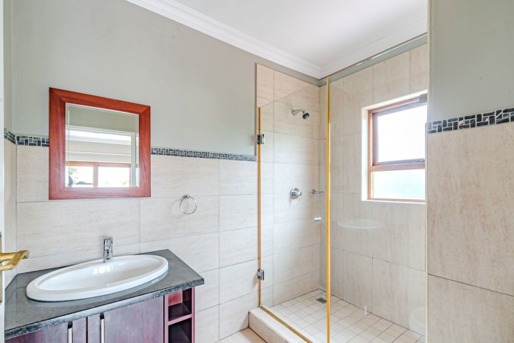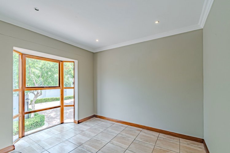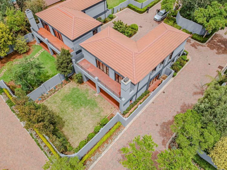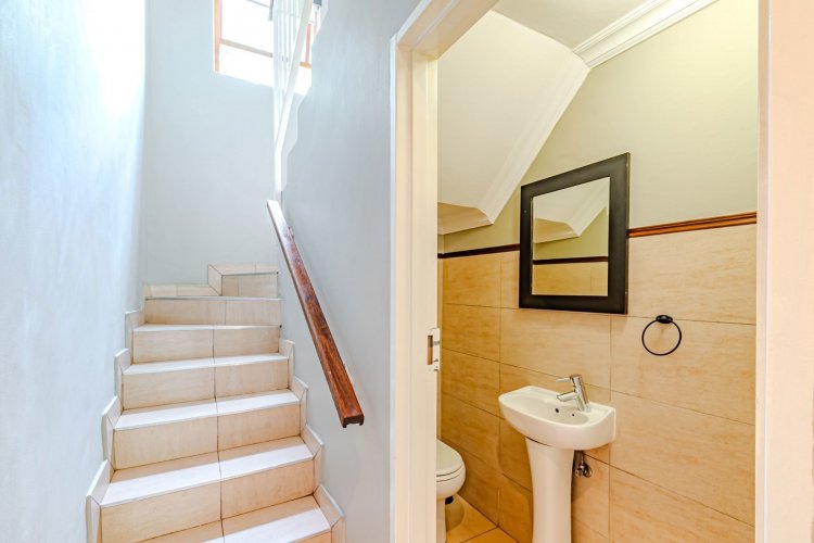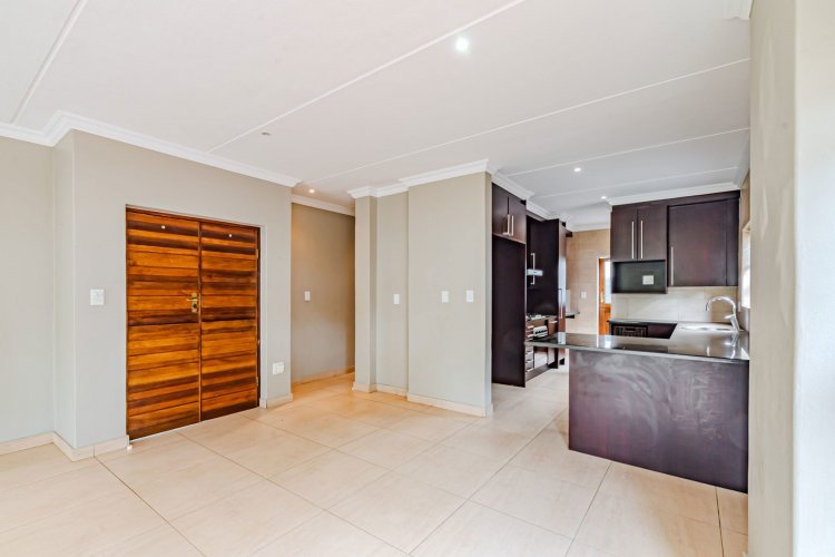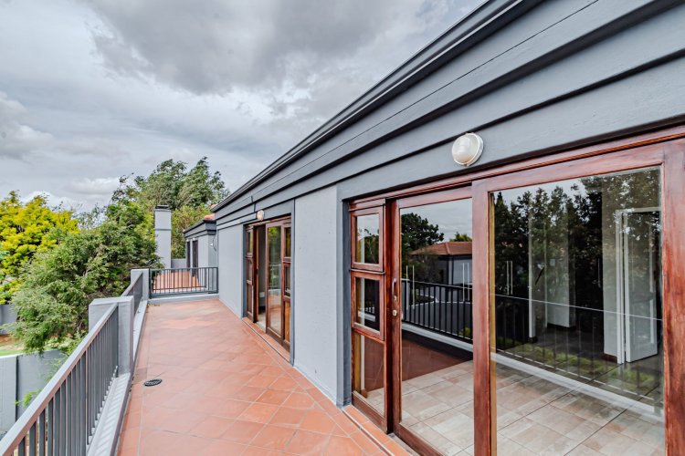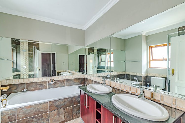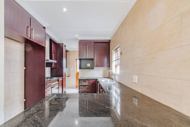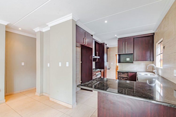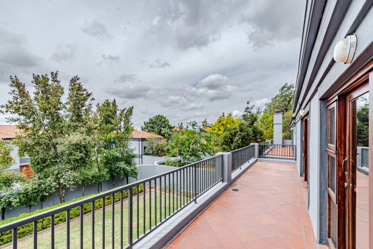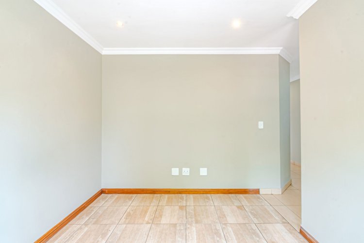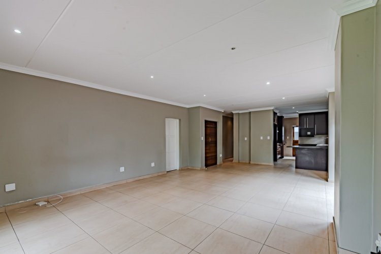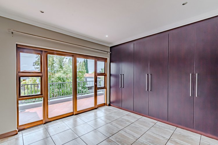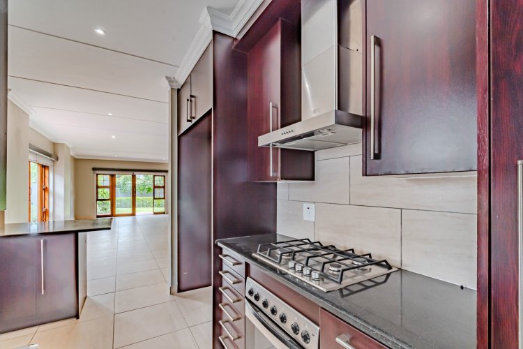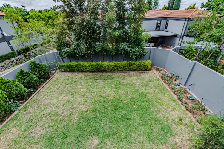EXCLUSIVE MANDATE: Large 265m2 cluster situated in tranquil cul-de-sac in Midstream with three bedrooms upstairs and a spacious pajama lounge/ office area. Each of the bedrooms are en-suite and the main bedroom has enormous space and a balcony. The main bedroom has an aircon already installed and build-in dressing table. Outside, the covered patio with build-in braai, overlooks a tranquil garden with beautiful trees and abundant birdlife with established trees for privacy. The downstairs area is open plan lounge, dining and kitchen - sliding doors to patio and garden. Ad additional sliding door to an outside sitting area is situated next to the dining room. Kitchen has breakfast nook, space for double door fridge/freezer, gas stove with electrical oven and separate scullery. There is direct access from the living room to the double garage with an extra storage room. The home is popular for rental due to its position close to school and a park with boma, pool and play area is close-by. The komplex levies , includes garden services, house insurance and maintenance of all exterior walls, roof and mutual garden areas. This is a must see as there is little at this price range in Midstream available with this offering and floor size, private garden and well-maintained complex.