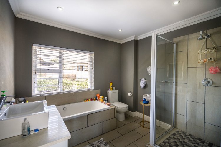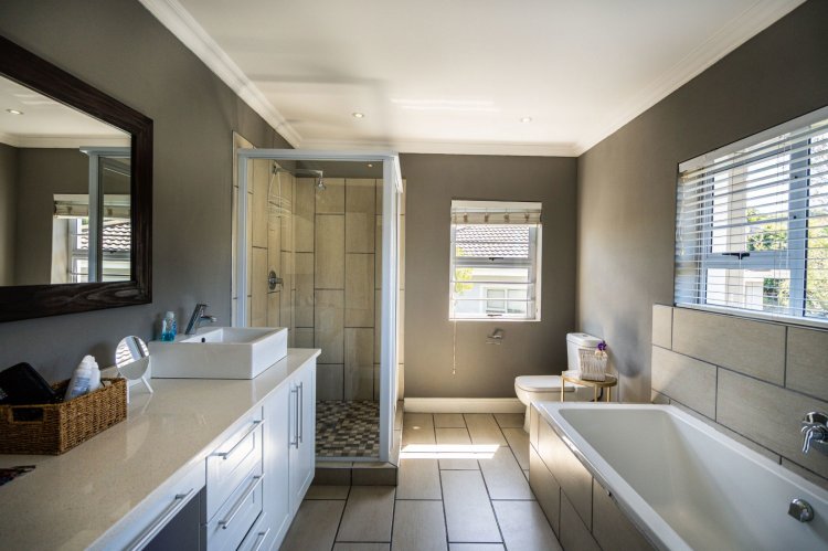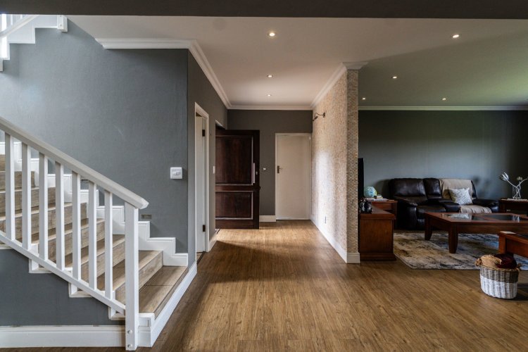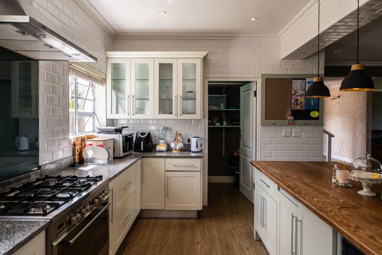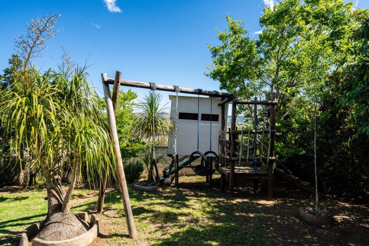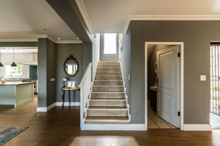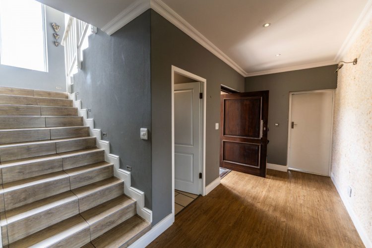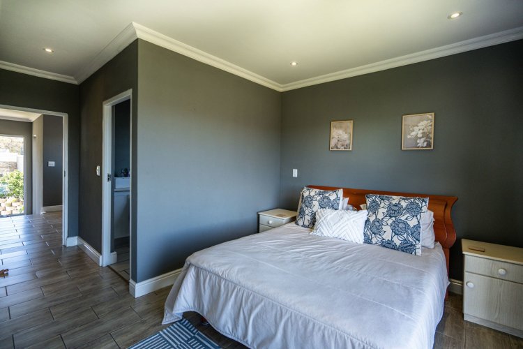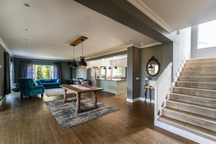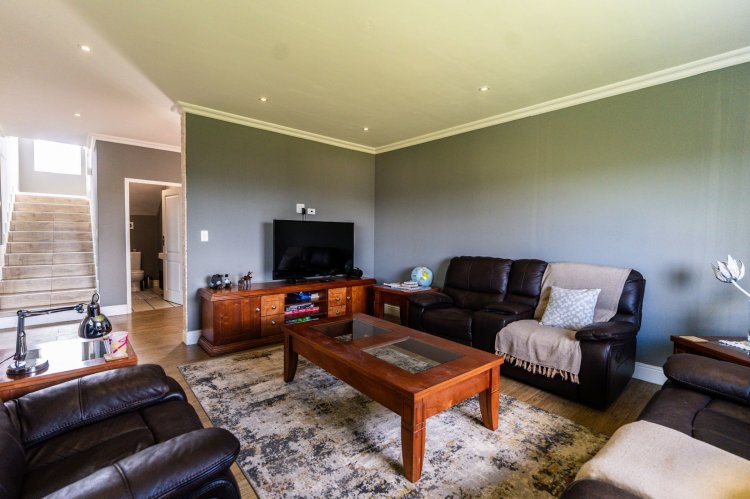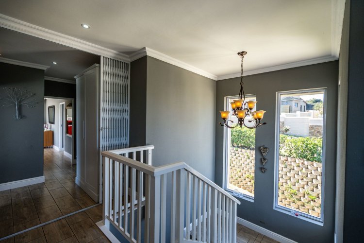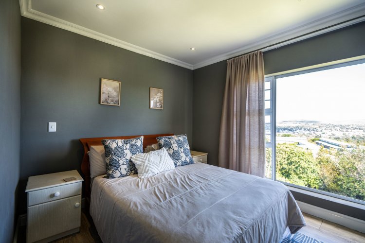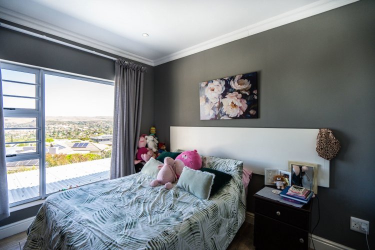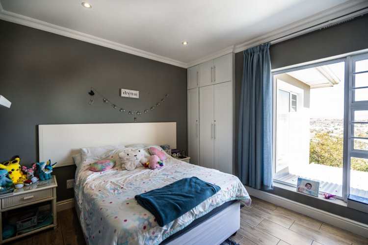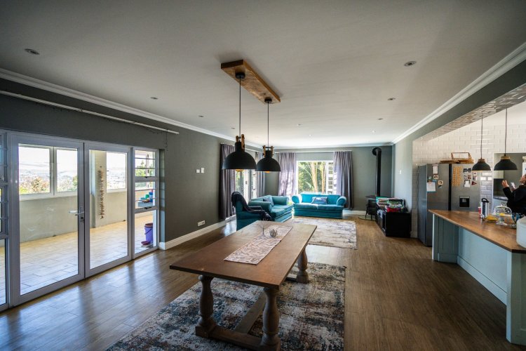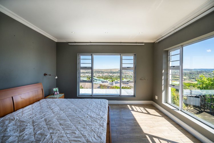 Wake up to sweeping views in this elegant double-storey home, perfectly positioned in the secure and sought-after Kings Heights Estate. With spacious open-plan living, light-filled rooms, and thoughtful design at every turn, this home is made for family life, entertaining, and everyday comfort. The expansive open-plan living areas flow seamlessly from the kitchen to the lounge and dining spaces, opening with stack doors onto a covered patio and braai area, ideal for gatherings with family and friends. Picture windows frame breathtaking views over Makhanda/Grahamstown filling the home with light throughout the day. A central fireplace creates a warm, inviting focal point in the living area, perfect for cozy winter evenings. Upstairs, four generous bedrooms and three bathrooms offer plenty of space for the family, with all bedrooms enjoying beautiful views. The main bedroom also features a walk-in dressing room for added convenience and luxury. Set on a good-sized garden, perfect for the family to enjoy, the property includes four 5000L plumbed water tanks, a pump, and a generator, giving you convenience and peace of mind all year round. Built with heart and designed for modern family living, this home offers secure estate living, space to grow, and views that will inspire you every day. Call today to arrange a viewing and experience this beautiful home for yourself.
