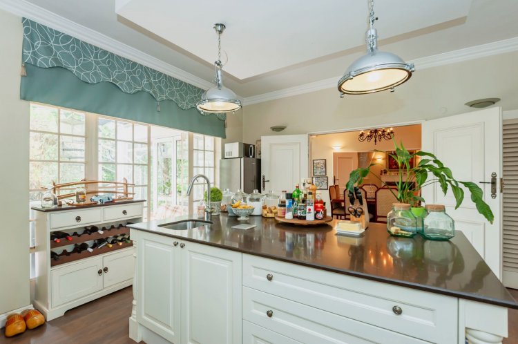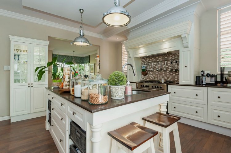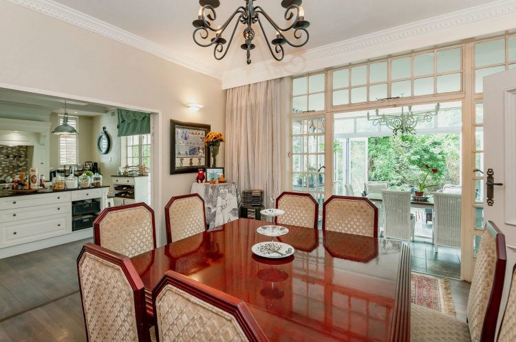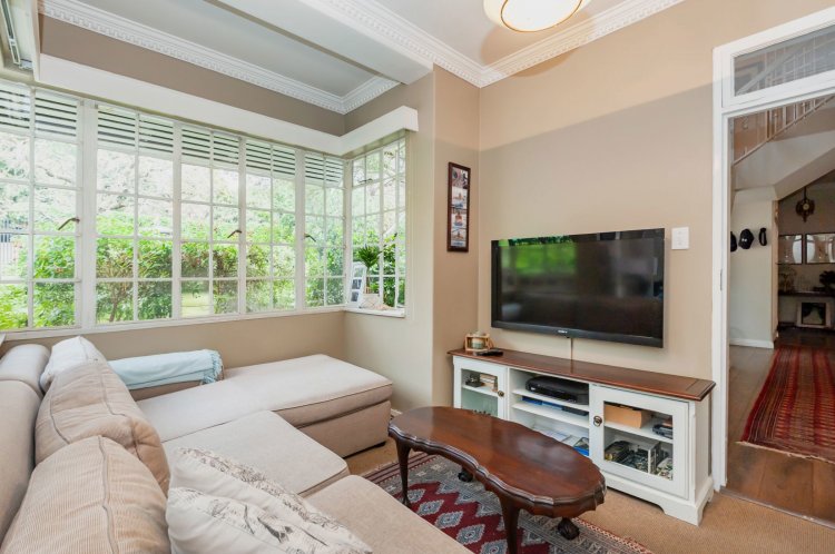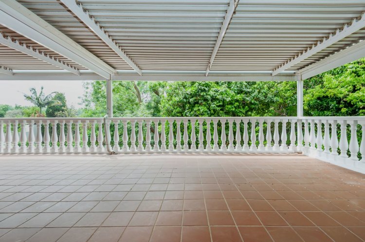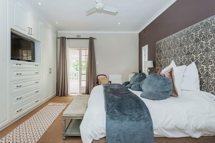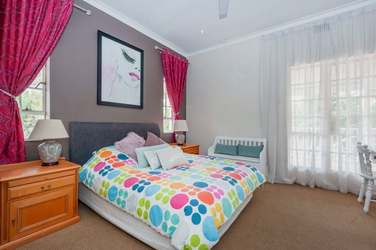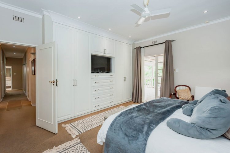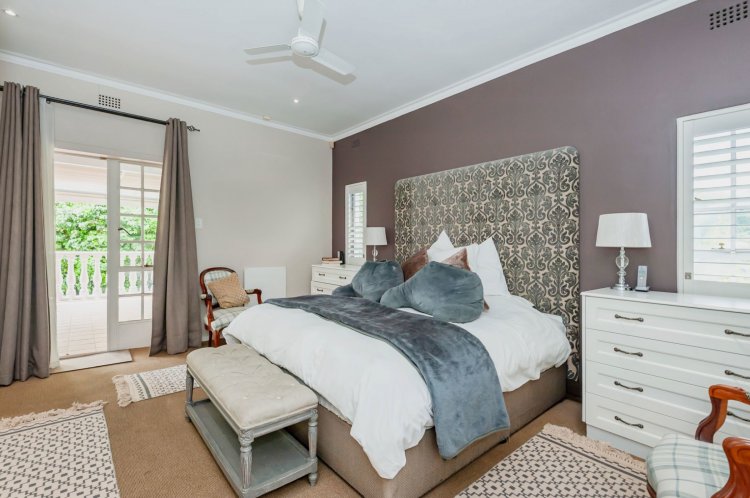 This charming residence offers 4 bedrooms and 2 bathrooms (main en-suite), with upstairs bedrooms opening onto a balcony boasting tranquil views. Ample cupboard space includes a dedicated linen room.