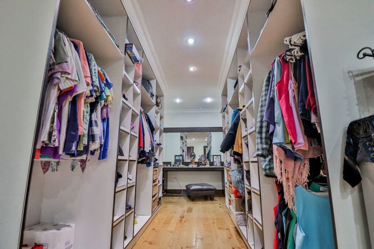 Ascend the elegant staircase to the tranquil upper level, where the luxurious main suite awaits — featuring a walk-in dressing room, full en-suite bathroom, and private lounge area. Stacker doors open onto a balcony overlooking the pool and garden, offering a serene retreat at the end of the day.