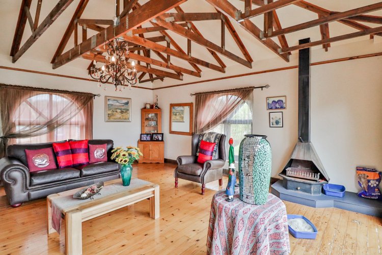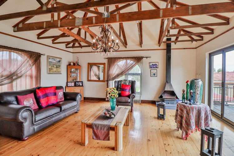 Step through the impressive wooden doors into a spacious open-plan layout that effortlessly connects the lounge, dining area, and modern kitchen. Large stacker doors flood the living spaces with natural light and open to an inviting outdoor entertainment area — complete with a sparkling pool, built-in braai, and a relaxed patio ideal for hosting friends or enjoying family weekends.