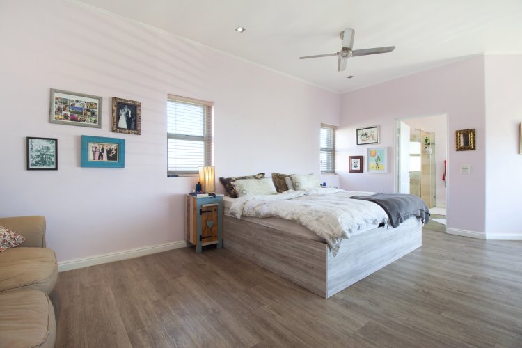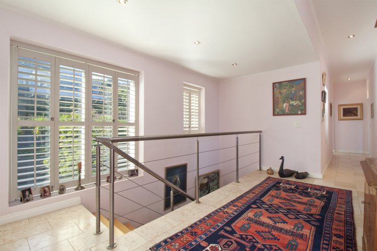 Upstairs, the spacious main bedroom offers a walk-in dressing room, en-suite bathroom, and private deck with spectacular views. Two additional bedrooms, two bathrooms, and a versatile home office (or fifth bedroom) also access the deck. Security, a large double garage, ample parking, under-floor heating and an inverter for uninterrupted power complete this comfortable, much-loved home.