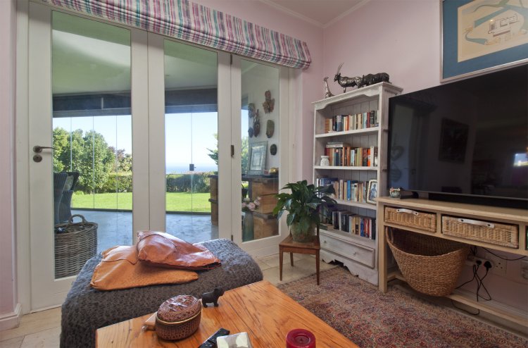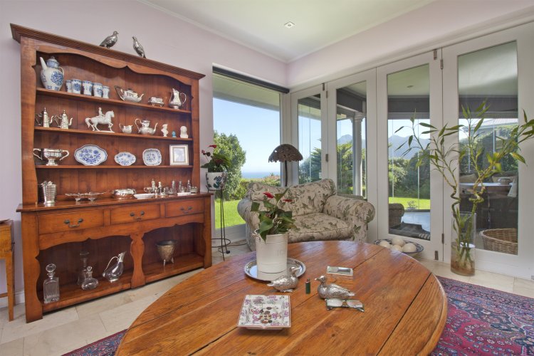 Enjoy uninterrupted sea and mountain views in this beautifully designed family home, perfect for relaxed living and easy entertaining. Enter through an elegant feature door from India into a warm, inviting space. The gourmet kitchen includes a walk-in cold room, movable island, an instant boiling water tap, seamlessly connecting to flexible living areas. Frameless glass doors open onto a covered stoep and lush terraced garden. Downstairs also features a guest bedroom and bathroom.