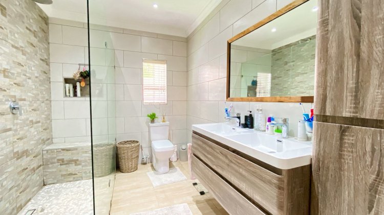 4 Spacious Bedrooms, 2 Modern Bathrooms (main en-suite) Guest Toilet Study for work-from-home flexibility Open-plan Living & Dining with seamless flow to patio Modern Kitchen with built-in cupboards & gas stove (2 × 48 kg cylinders) Entertainment area with boma and newly upgraded braai space Patio overlooking a neat, landscaped garden Double Automated Garage + extra paved parking for 2 cars