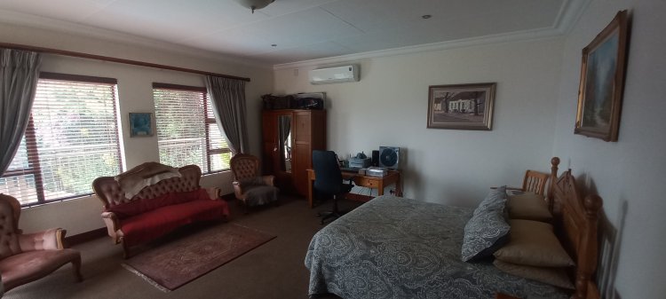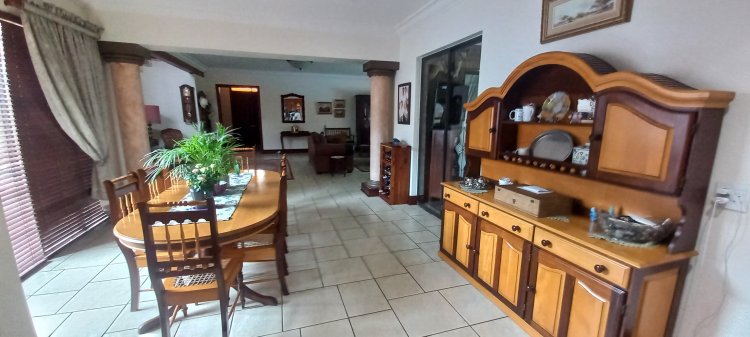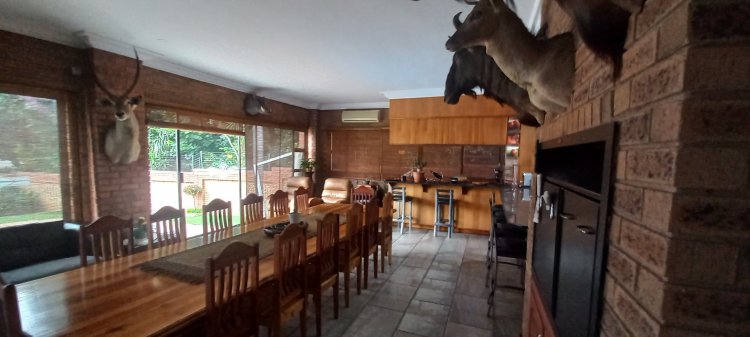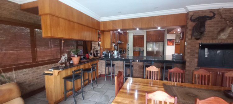 The entertainment area, with glass sliding doors, has a large serving hatch into the kitchen, ensuring cullinary delights are enjoyed all year round. There is also a built in bar counter as well as braai (part of which can be converted to gas should you wish to do so) catering for all entertainment needs. This in turns leads out to the vast, private garden and sparkling swimming pool!