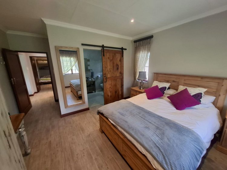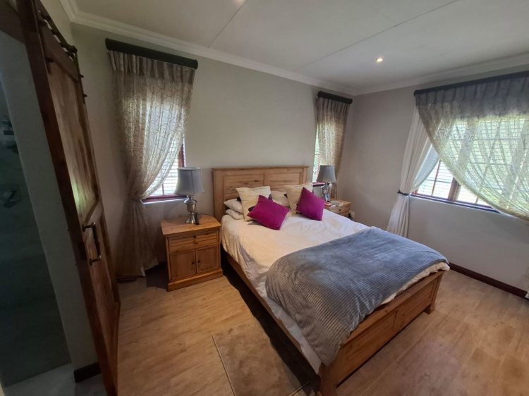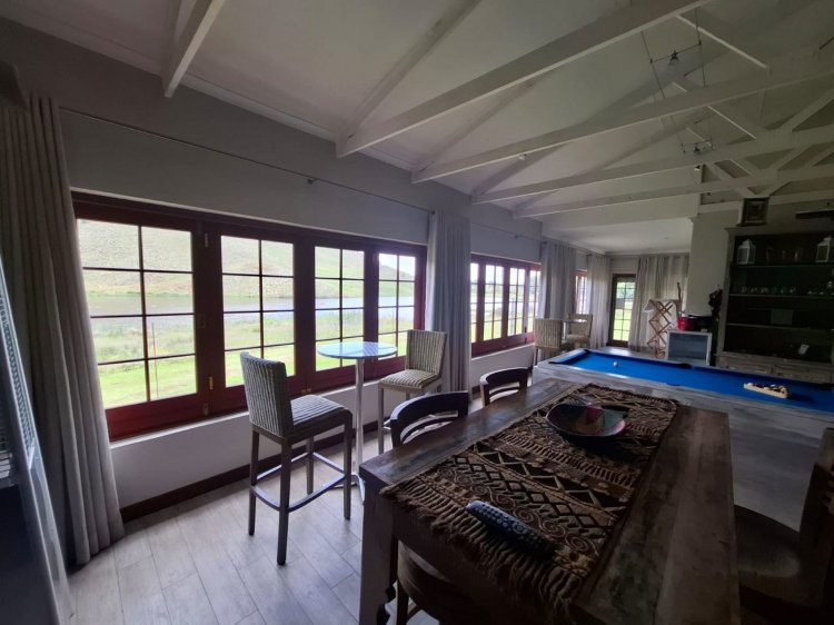 Welcome to your dream home in the serene and picturesque Oaklane Estate, in the charming town of Dullstroom. This beautifully designed four-bedroom property offers a perfect blend of comfort and natural beauty, situated on the Dullstroom dam with views of the renowned Suikerboskop nature reserve. Upon entering the home, you will be greeted by a spacious and inviting living area that exudes warmth and cosiness. The interior boasts a tasteful blend of modern and rustic elements, creating a stylish and comfortable ambience. The open-plan design seamlessly connects the living room, dining area, and kitchen, providing an ideal space for entertaining family and friends. A closed-combustion fire place is the heart of the house with the option to serve as an inside braai on those cold winter days. The kitchen is a highlight with ample cupboard space and lovely lead glass finishes. It has high-quality appliances, and sleek granite countertops, making it a joy to prepare meals. The four bedrooms (three are on suite) are generously sized and feature built-in closets, offering plenty of storage for your belongings. The bathrooms are elegantly designed and include modern fixtures and finishes and cemcrete flooring. Step outside onto the covered and closed-in patio, where you can relax and soak in the breathtaking views of the surrounding natural landscape. The patio is the perfect spot for “outdoor” dining and entertaining, with a built-in braai that allows you to enjoy the pleasures of cooking while taking in the fresh air. Oaklane Estate is known for its prime location, 24hour security and offers residents convenient access to the municipal dam for various water activities, such as fishing and kayaking. Nature enthusiasts will appreciate the proximity to the Suikerboskop nature reserve, where hiking trails and wildlife sightings await. The Dullstroom town centre is just a short distance away, providing a range of amenities including shops, restaurants, and cafes. Don't miss the opportunity to own this charming home in Oaklane Estate. Contact us today to schedule a viewing and experience the beauty and tranquillity that this property has to offer.