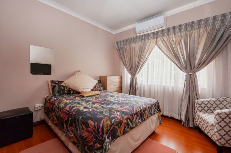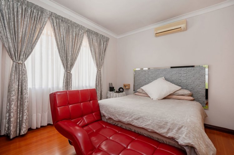 The living areas flow seamlessly, enhanced by laminated flooring, air conditioning, and aluminum windows that add a clean, modern finish throughout. An inverter system ensures uninterrupted living during power outages, offering peace of mind.