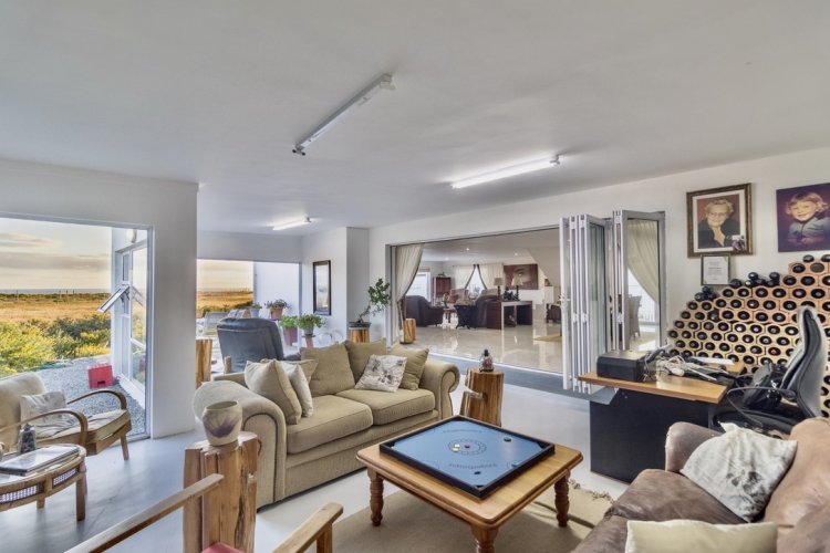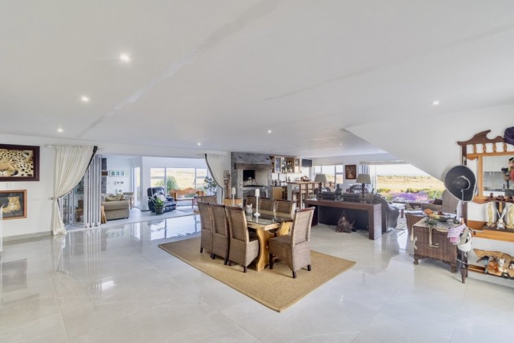 Key Features: Open-Plan Living Area: The heart of this home is a spacious open-plan living area, designed to maximize the breathtaking views. Featuring a built-in fireplace and braai, this space seamlessly integrates the dining area and kitchen, flowing into the dedicated indoor braai and entertainment area.