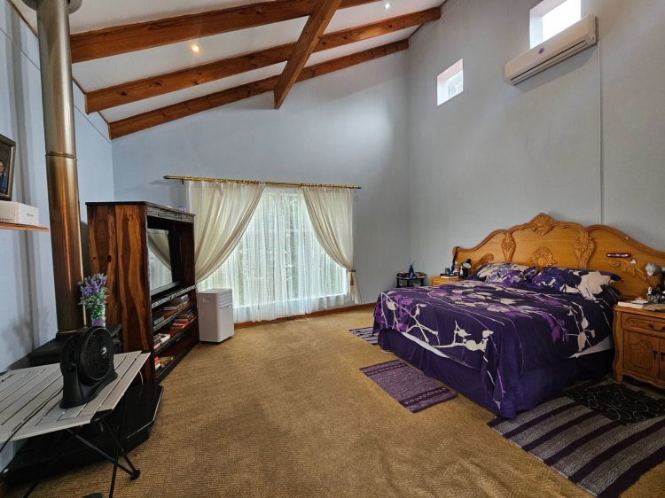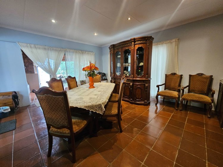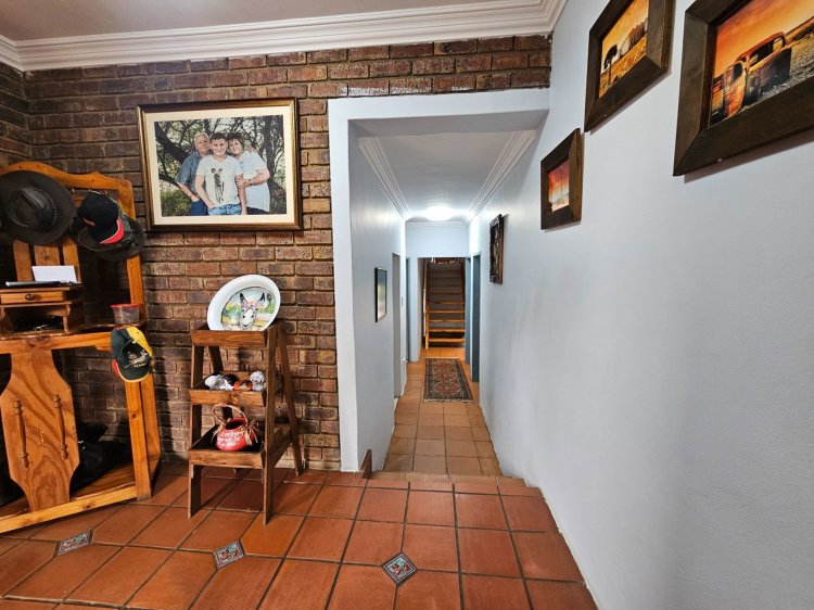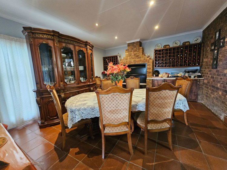 Further to this the lovely, spacious family home offers a lounge with fireplace, indoor braai area that leads to a cosy covered patio, dining room, wood fitted kitchen, triple garaging and ample security.