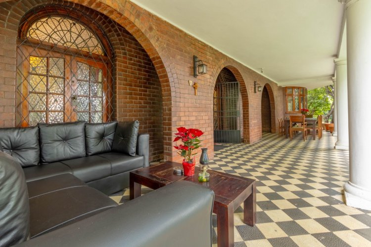 Accommodation includes four spacious bedrooms plus a study that can serve as a fifth bedroom. The main and first bedrooms both feature fireplaces and wooden floors, while the third bedroom opens onto the covered patio. The fourth bedroom links to a sunroom with kitchen access. Two bathrooms, a guest toilet and a passage storeroom ensure comfort and functionality for families.