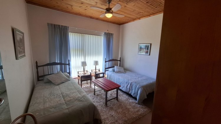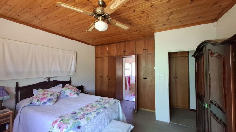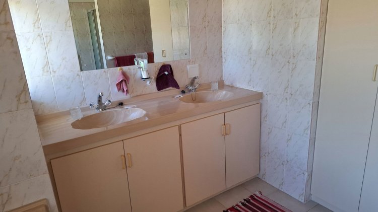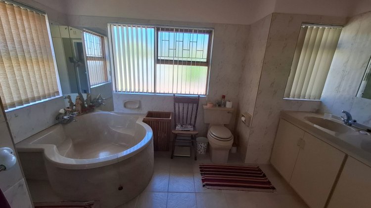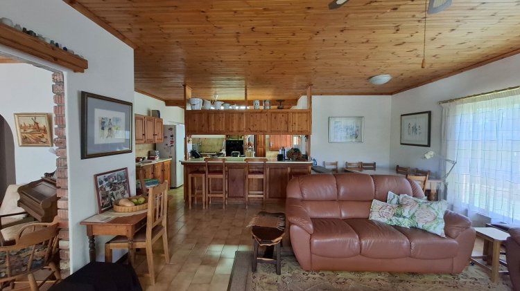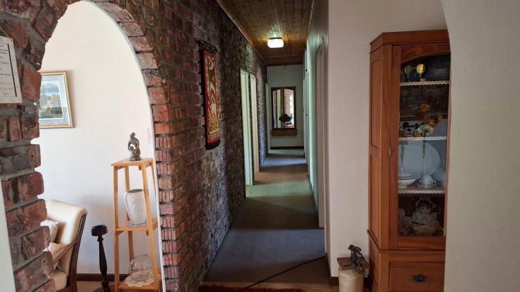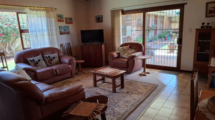 This well maintained family home is situated in a sought after area, within walking distance to all schools It consists of four bedrooms, of which one can be utilized as a home office or work room. The Master bedroom has a full en-suite bathroom, the family bathroom serves the other bedrooms an there is also a guest toilet. Off the entrance hall you'll find a formal lounge and a separate large lounge, dinging area, and the kitchen, which is open plan to the lounge, with a fitted hob and oven. A fairy, automated garden with various fruit trees and small green house, will blow you away. A undercover braai area, with a build in braai, leads out of the family room. A unfinished guest cottage with a bathroom and an extra room currently used as a workshop, are one of the plus features of this beautiful home. The double automated garage leads direct into the house and there you will also find a store room. Don't miss out on this immaculate house with so may possibilities