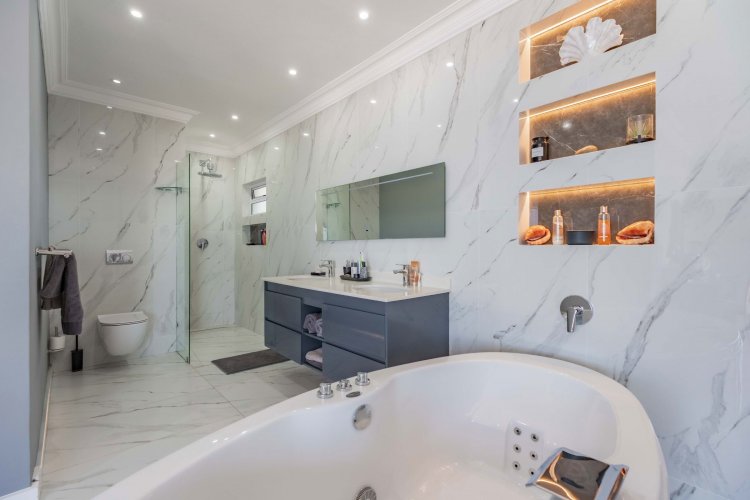 Step inside through a grand double-volume entrance hall framed with floor-to-ceiling glass. This modern home features four sea-facing bedrooms, each with private balconies. Two bedrooms include en-suite bathrooms, complemented by a newly renovated family bathroom. The property offers two elegant reception areas — a stylish formal lounge that flows onto the pool deck, and the spectacular “Whale Watching Lounge” with wraparound panoramic sea views.