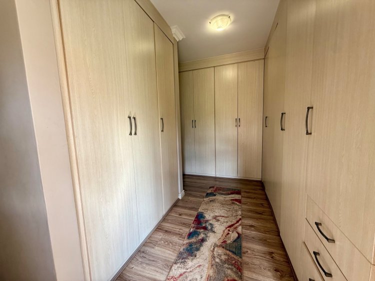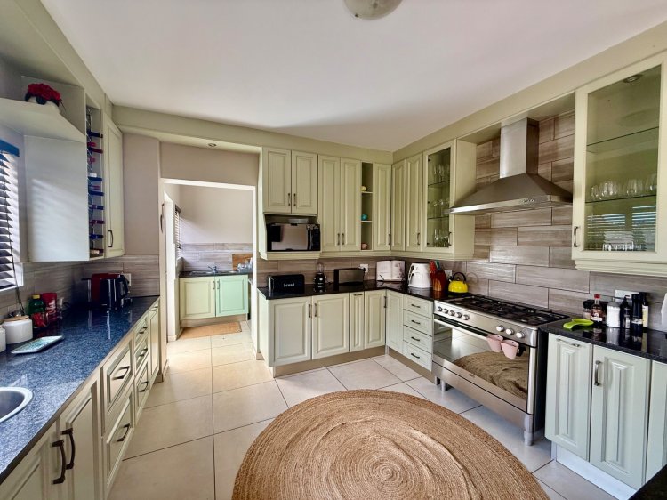 This home offers four bedrooms, two of which are en-suite. The main bedroom is exceptionally large, featuring a walk-in cupboard, a luxurious en-suite full bathroom and a door leading to the garden. Two of the bedrooms share a full bathroom. A guest bathroom adds extra convenience, while the fourth bedroom also enjoys its own en-suite with a shower, basin, and toilet.