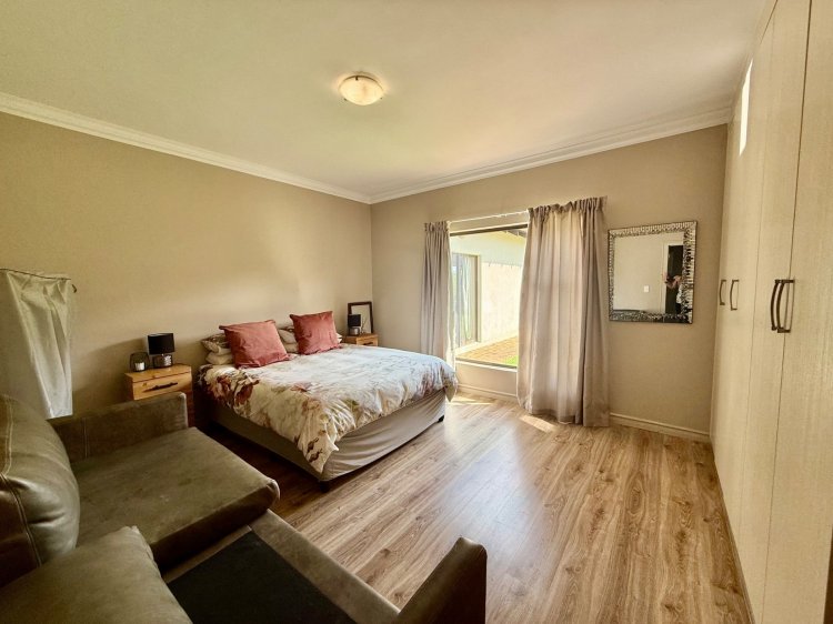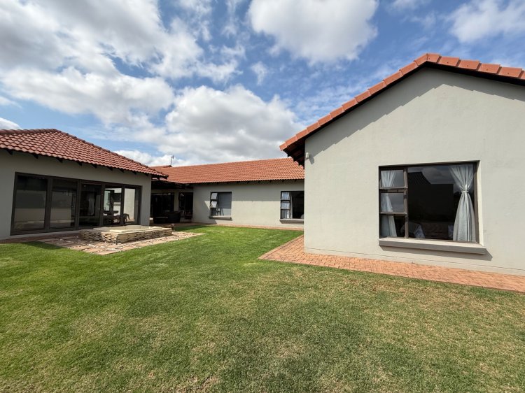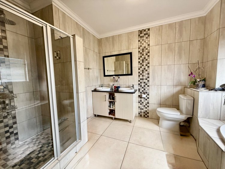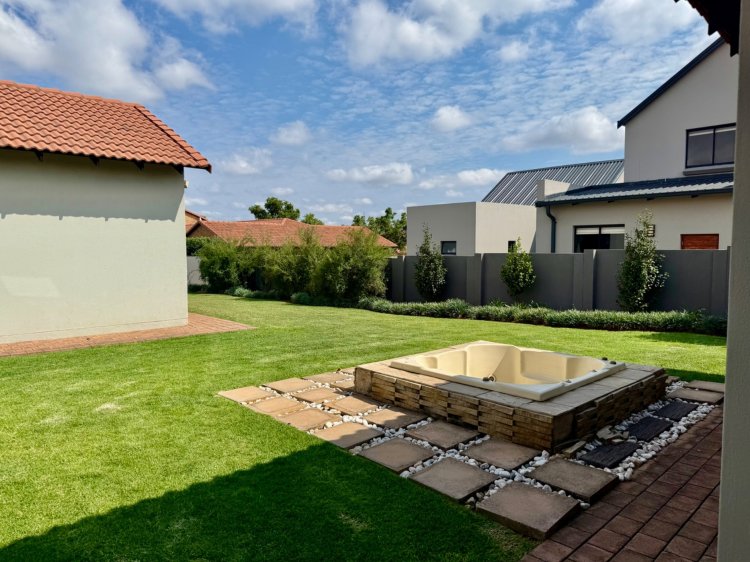 Step outside to an entertainer's dream — a large covered patio with a built-in braai, overlooking a beautiful swimming pool, jacuzzi, and an expansive garden. There's also an extra courtyard, perfect for storing a boat or caravan.