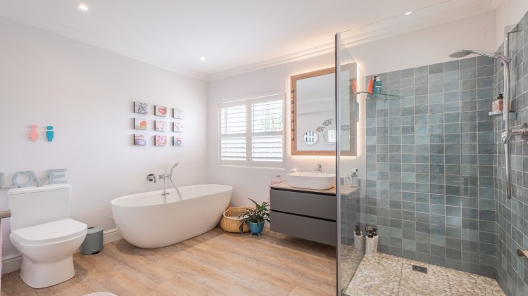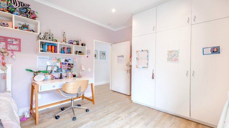 The large main bedroom is a true retreat, featuring a walk-in closet and a full en-suite bathroom. Three additional bedrooms all have built-in cupboards, with one enjoying its own en-suite, while a full, spacious family bathroom serves the rest of the home.