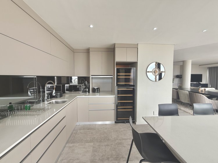 Positioned in the heart of Blouberg’s beachfront precinct, this four-bedroom, four-bathroom penthouse for sale at Aquarius defines luxury coastal living. Featuring floor-to-ceiling glass and wrap-around balconies, it captures uninterrupted views of Table Mountain, Robben Island, the Atlantic Ocean, and the Durbanville Hills. The open-plan living and dining areas connect seamlessly with a premium entertainer’s kitchen, complete with integrated appliances and a separate scullery. Every bedroom is en-suite, offering privacy and hotel-style comfort in a setting designed for space and light.