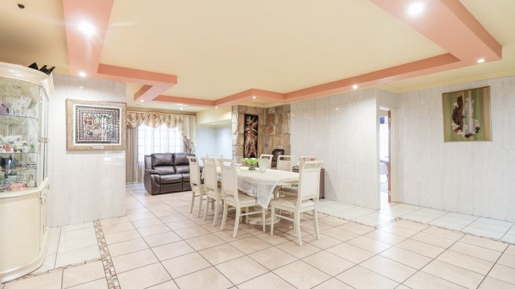 Located in a secure access controlled area with a guard house, this exceptional free-standing home offers outstanding space, comfort, and versatility for a large family. As you enter, you are welcomed by a warm reception lounge that flows effortlessly into a TV lounge on the right. Moving forward, you step into a generously sized dining room complete with a guest bathroom, creating an ideal space for both family meals and entertaining. To the left of the dining room is a private study nook that leads into a luxurious en-suite bedroom featuring three walk-in closets and a full bathroom equipped with a jacuzzi. The dining room also connects to another very spacious en-suite bedroom, making this wing perfect for guests or extended family.