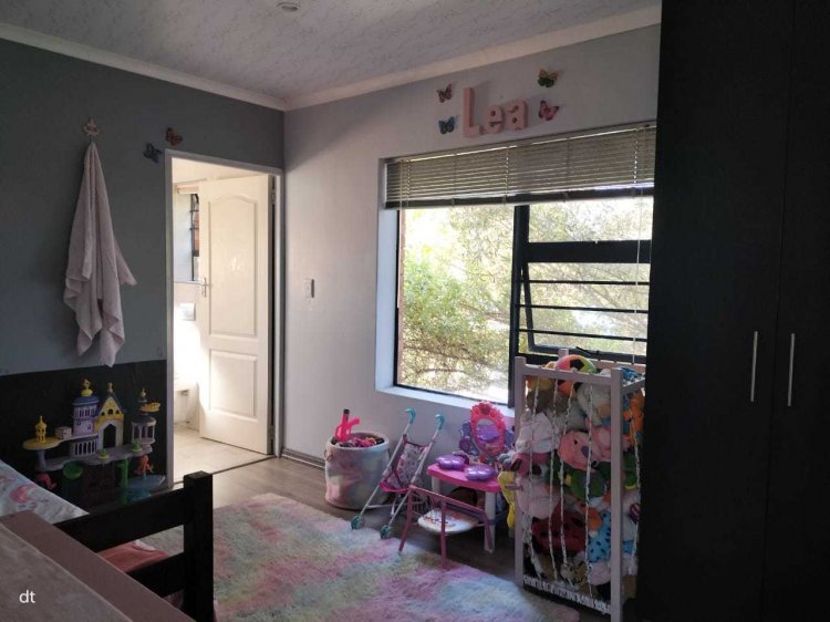The single level residence features two spacious bedrooms, each with its own en-suite bathroom, a private study and a beautifully appointed open-plan lounge and dining area. The modern kitchen boasts quality finishes, ample cupboard space and a separate scullery, while a private covered patio with built-in braai invites relaxed outdoor living.