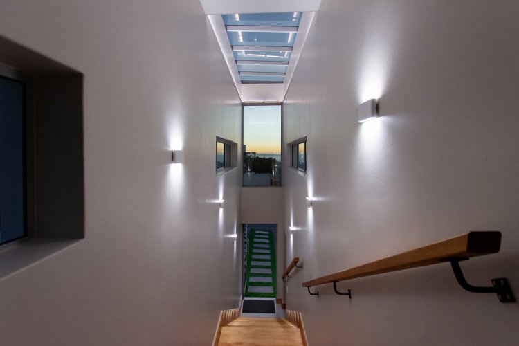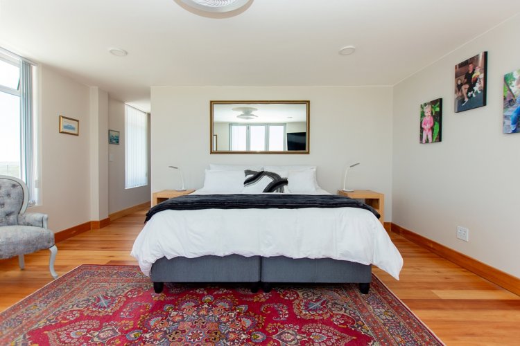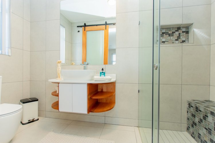 Throughout the home, 20mm solid Saligna wood flooring and custom detailing infuse warmth and timeless elegance. All large soffit lights are remote-controlled, and every TV point is fitted with 30mm conduit for seamless integration of DSTV and fibre internet. A state-of-the-art elevator connects all floors, and structural, electrical, and plumbing provisions have been made for the future installation of a pool and solar system.