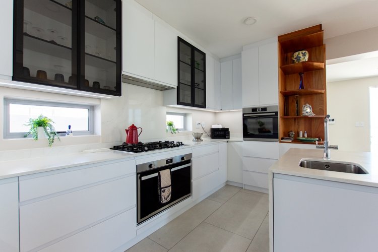 Inside, elegance takes center stage. The open-plan living area seamlessly transitions into a high-end kitchen, equipped with a gas oven and hob, an additional electric oven, and a dedicated laundry wall within the walk-in pantry and scullery. A convenient filter tap at the prep bowl adds a practical element to this sophisticated culinary space. Ideal for entertaining, the home also boasts a built-in braai, with an additional braai conveniently located on the upper patio.