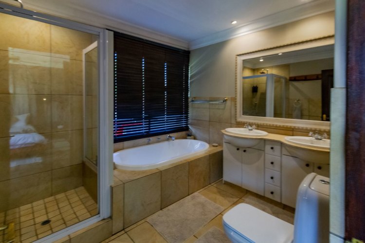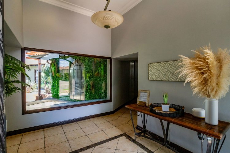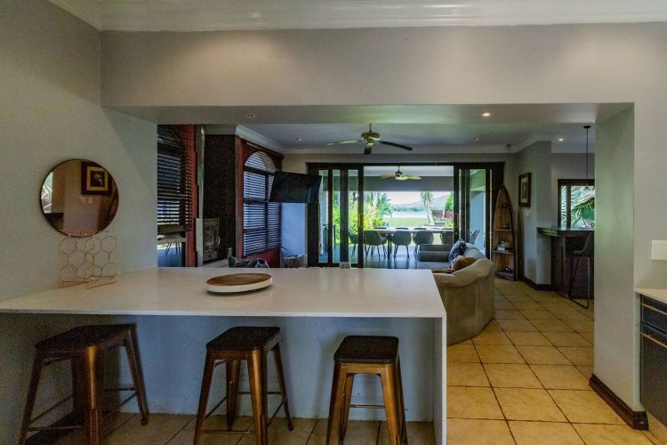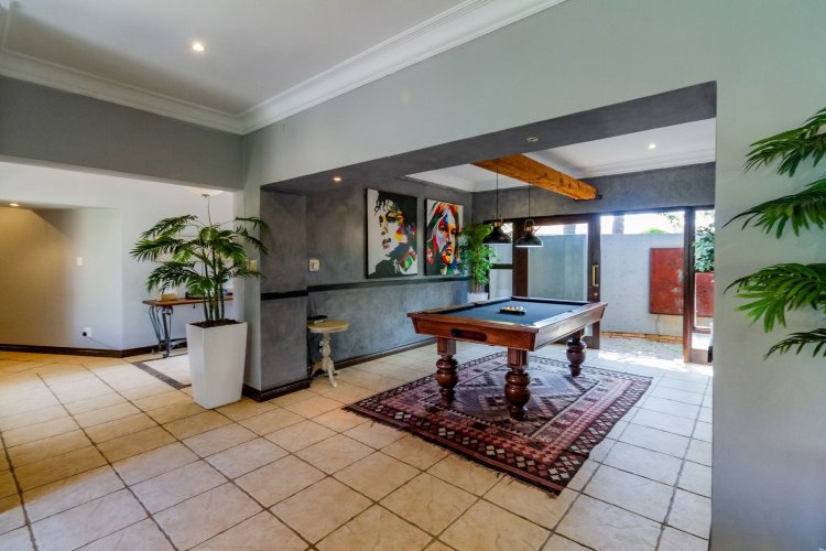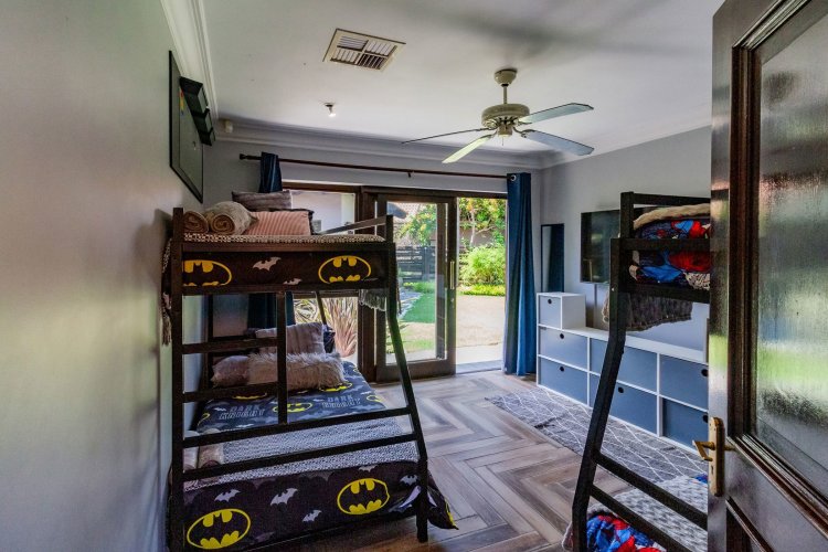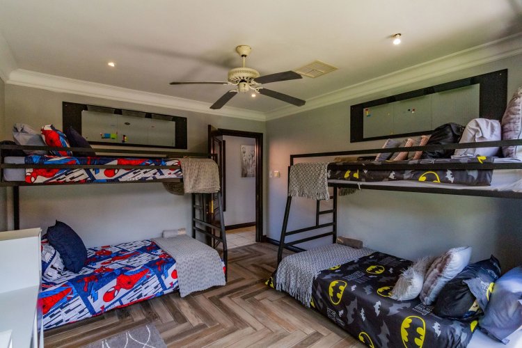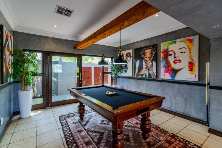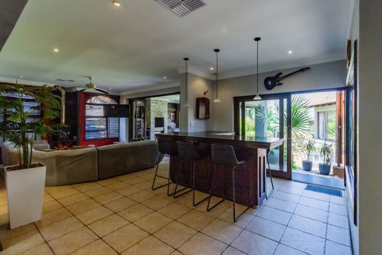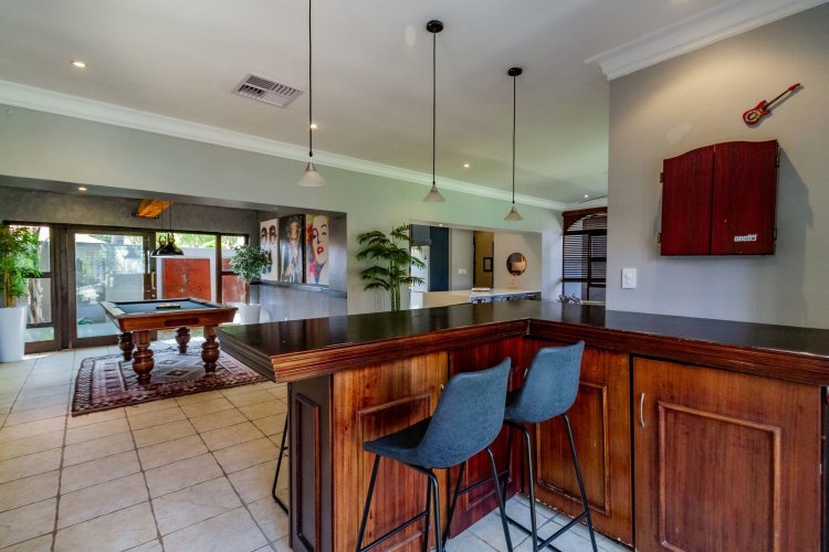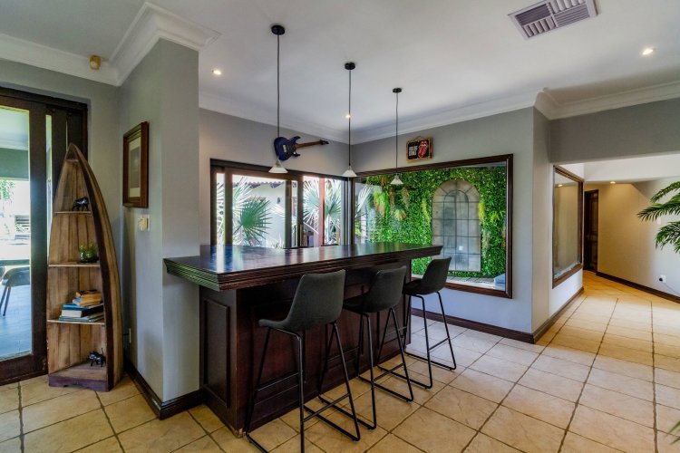This turnkey, furnished home is ready for its next owner. It features 5 generous bedrooms and 4 bathrooms, all in one wing. Four bedrooms open straight onto the large garden for easy living. The open-plan living space keeps guests entertained, where you can shoot some pool, hang out at the bar, watch a movie by the cosy combustion fireplace, or cook together.