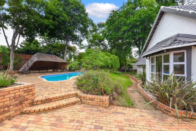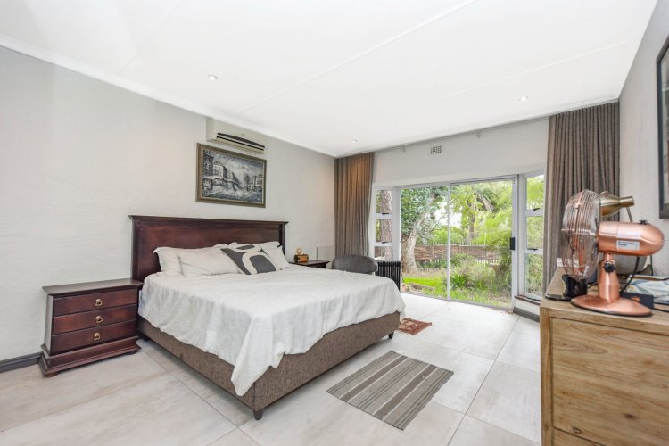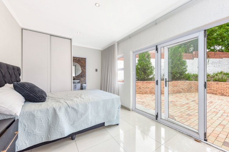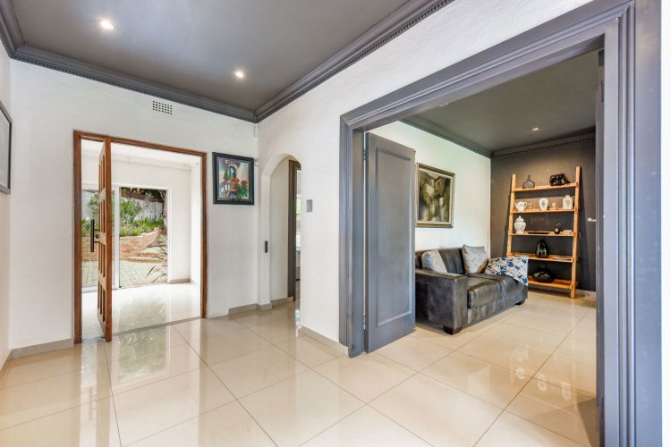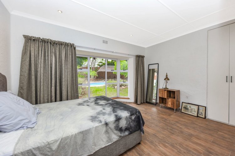 This outstanding, super spacious, family home has been stylishly refurbished to the highest standards and using premium finishes, including all old steel windows and doors replaced with new anodised aluminium. There is an easy flow between the elegant lounge, with fireplace, the dining room, the "Chefs kitchen", with under counter oven and pantry. Lovely private pool area, lapa and garden afford great outdoor poolside entertaining. The bedroom wing consists of 5 luxurious double bedrooms, 3 bathrooms, with the main ensuite, plus ample cupboards. Double garage and staff accommodation. This timeless and elegant home is situated in a lush garden of 2424m2 with lovely trees, rolling lawns and in a prime position alongside the renown Liliesleaf heritage site. Large parking area for guests. Excellent 24hr boom security. Easy access to esteemed schools, shops, restaurants and major freeways.