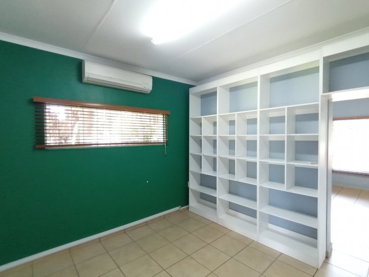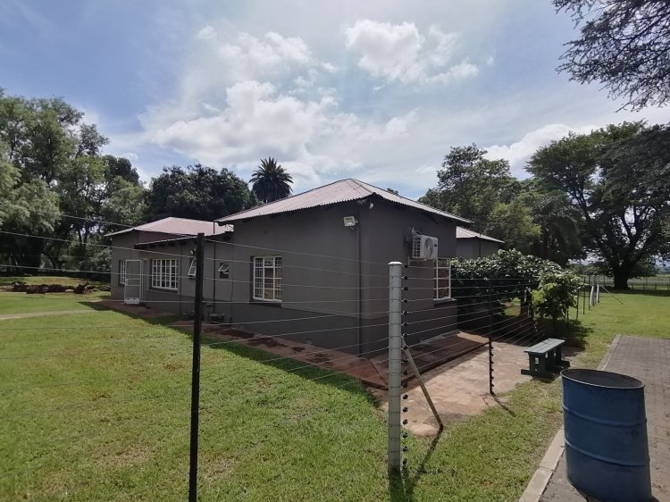 • Office 1 (Executive Office Complex): o Reception, boardroom, and 9 private offices (one with ensuite bathroom). o Two filing rooms, kitchen, and 3 bathrooms. o 11 air conditioners throughout. o Large covered patio for staff and client use. o 2 x 5,250L JoJo water tanks, a large standby generator, and storage facilities including 2 x 6m steel containers. • Office 2 (Professional Office with Entertainment Area): o Large kitchen and spacious office with built-in cupboards. o Flexible office/boardroom space with one bathroom. o 4 air conditioners. o Entertainment Lapa with built-in braai. o 4 covered parking bays. • Office 3 (Old Farmhouse Converted to Office Use): o Large kitchen with pantry. o 5 offices, 1 filing room, and 2 boardrooms/offices (one with ensuite bathroom and built-in cupboards). o Linen cupboard, 7 air conditioners, and 2 additional bathrooms. o Large patio and 10 covered parking bays. o Water storage: 1 x 2,500L JoJo tank, 1 x 1,000L tank, plus a large cement dam.