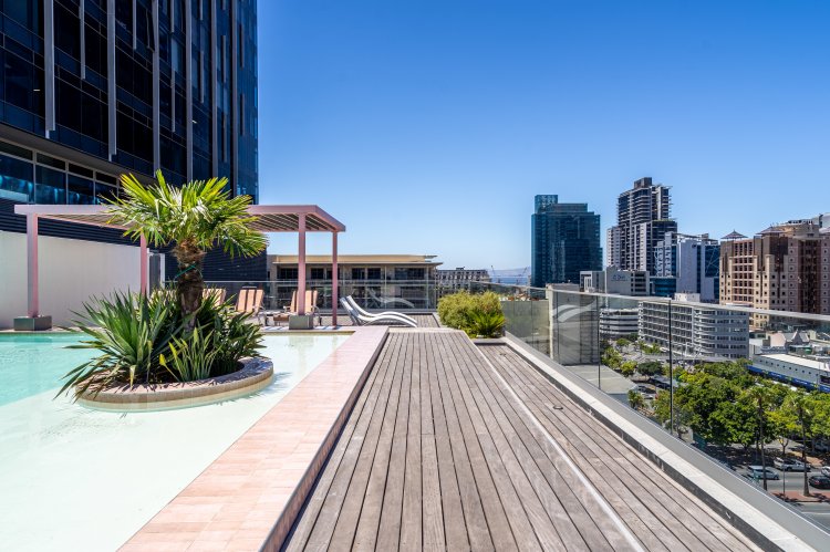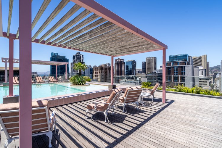 Situated in a secure, well-maintained building with a rooftop pool and stunning Table Mountain views, the unit is fully air-conditioned and thoughtfully designed for comfort and convenience. Guests enjoy a fully equipped kitchen, cozy outdoor seating, reliable Wi-Fi, free on-site parking and 24/7 security monitoring, ensuring a seamless, worry-free stay.