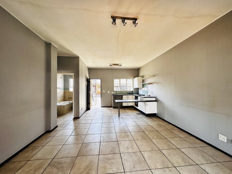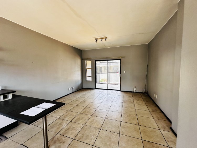 This neat one-bedroom ground-floor unit offers a functional kitchen and an open-plan lounge, flowing seamlessly to a private patio with a built-in braai — perfect for relaxed outdoor living.