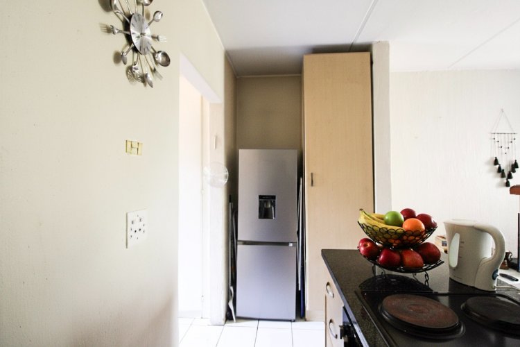 The open-plan kitchen flows seamlessly into the living and dining area, creating a bright and welcoming space that extends onto a private balcony, perfect for morning coffee or evening relaxation. The spacious bedroom features built-in cupboards and its own balcony, allowing natural light and fresh air to fill the room.
