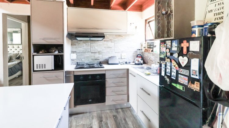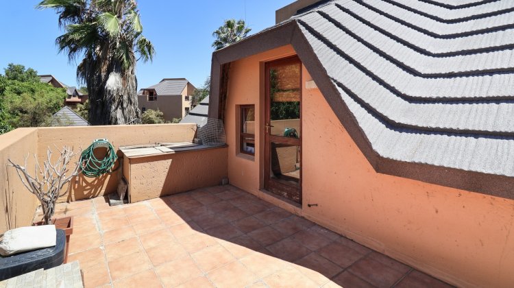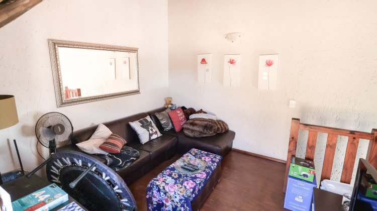 This top-floor 1-bedroom, 1-bathroom loft apartment in the heart of Chobe Sands Estate, Douglasdale. With two balconies, one off the main living area and another from the loft, this unit invites natural light, fresh air, and tranquil views into every corner. Inside, you’ll find a spacious open-plan layout with double-volume ceilings, rustic wooden beams, and a thatched roof that brings lodge-style warmth to your everyday living. The loft adds a versatile second space and opens to its own private balcony. Downstairs, the main bedroom is cozy and well-lit, while the bathroom is neatly finished with modern fittings. Fibre-ready and equipped with prepaid utilities, this unit is designed for easy, lock-up-and-go living.