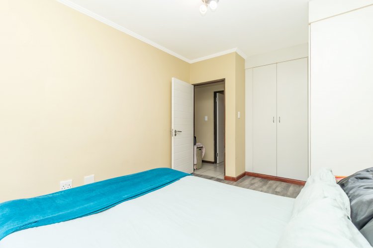 The bedroom has built in cupboards and can fit a queen sized bed.