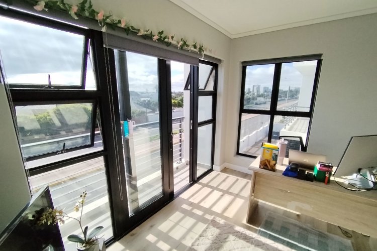 The spacious living room overlooks the ocean and enjoys natural sun light through the sliding door leading to a small balcony. The modern granite top kitchen has designer built-in cupboards. The double bedroom have built-in cupboards. The single bathroom has the walk-in shower, rain shower head, basin & toilet. Single parking bay.