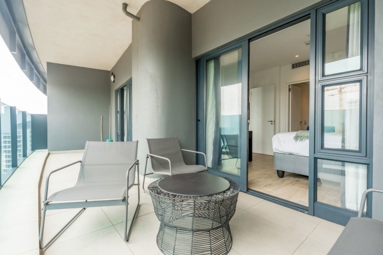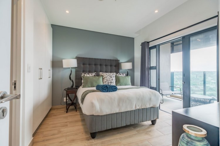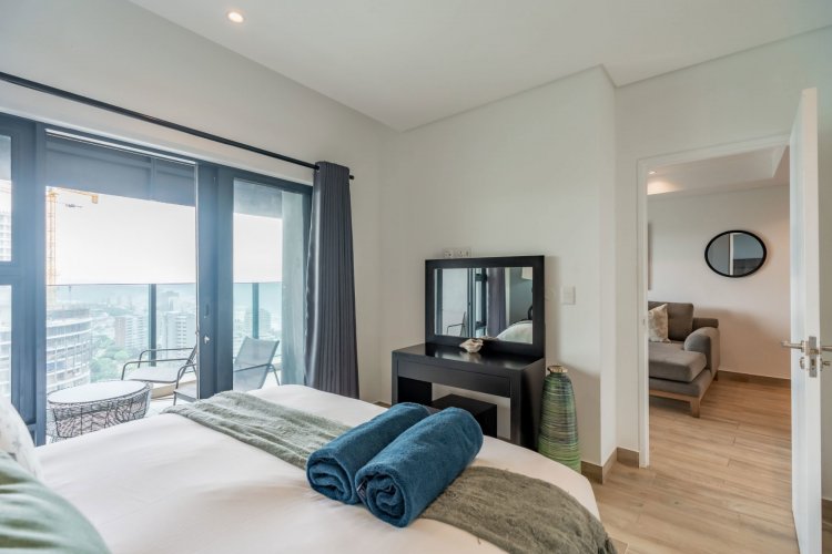 The apartment features one bedroom and an ensuite bathroom for ease of use. The kitchen is well designed and modern as it flows onto the lounge allowing for easy flow and living. A shared balcony between the bedroom and the lounge gives an amazing North facing view all the while protecting you from the afternoon Durban sun.