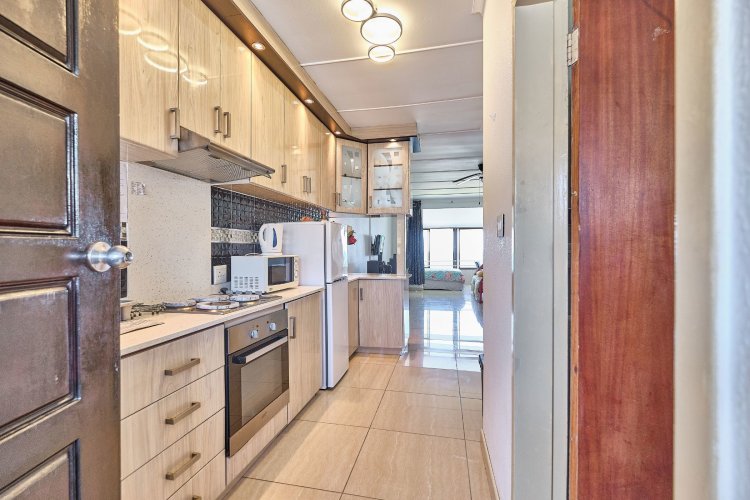 The contemporary kitchen seamlessly connects to an open lounge area, creating a bright and inviting space tailored for comfortable seaside living. Every aspect has been carefully considered to enhance comfort, maximize views, and support an enjoyable lifestyle.