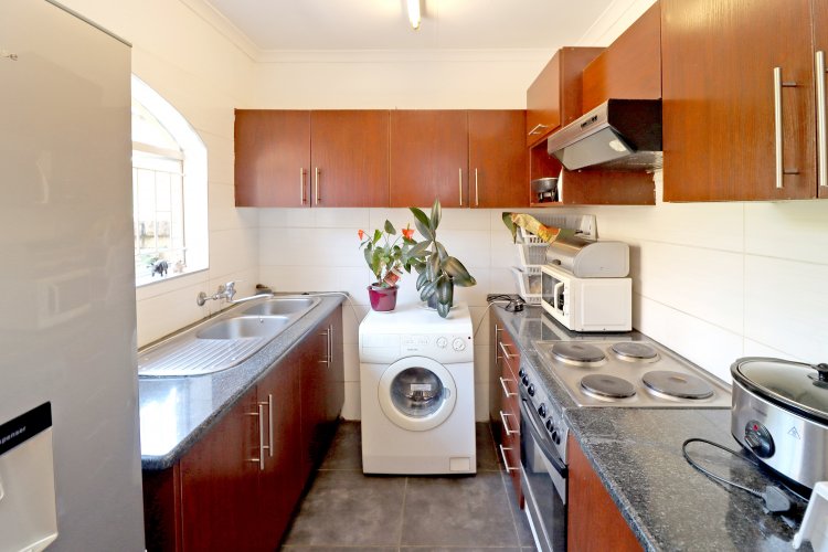1 open plan bed studio, fitted kitchen, lounge sliding to patio and well looked after private garden ,1 bathroom,1 lockup garage ,in a well secured complex in the heart of Corlett Gardens, area highly central with easy access to all major freeways, to Sandton, Rosebank, airport and malls.