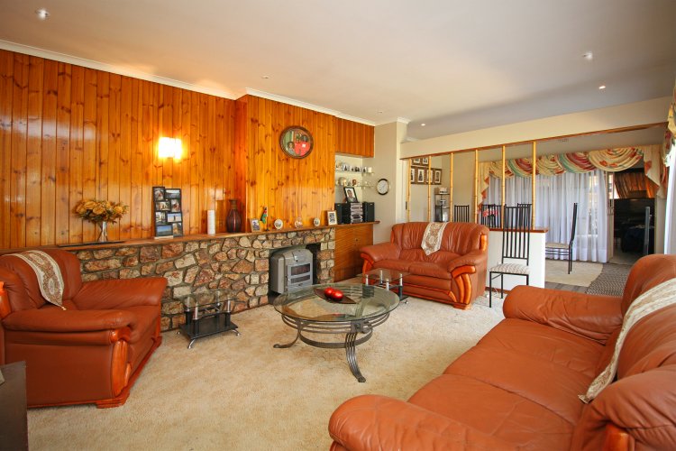 Main house has a kingsized, yet cozy lounge with functional anthracite heater, leading onto an open plan dining room, and all opening out onto a raised veranda with views to die for.