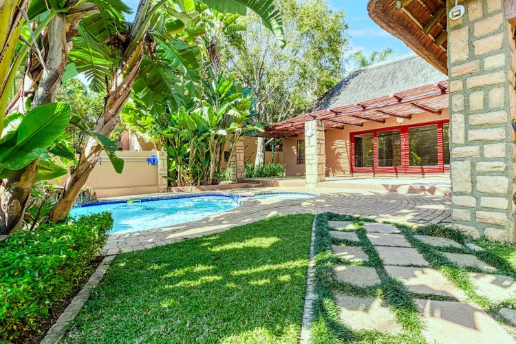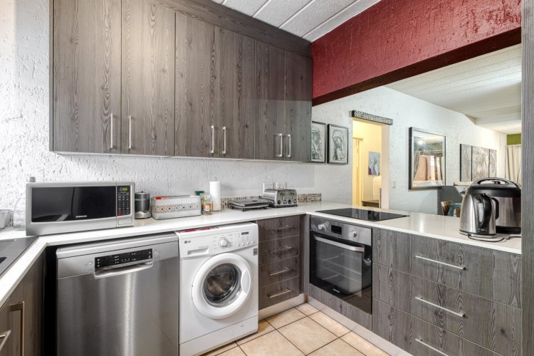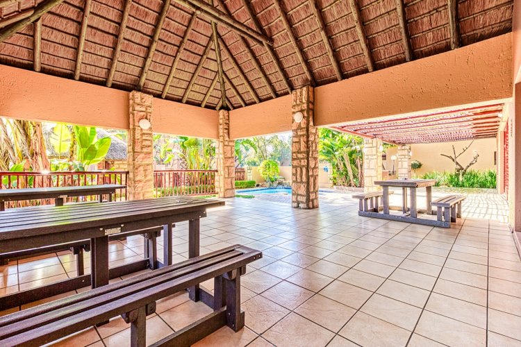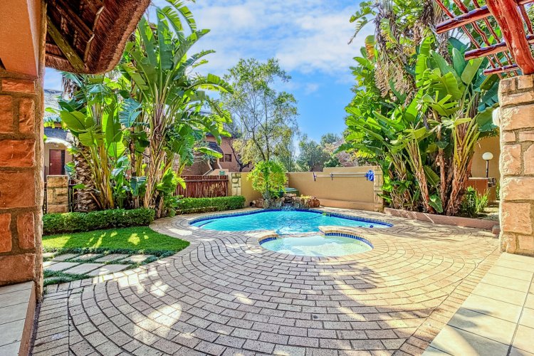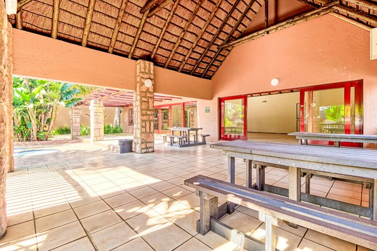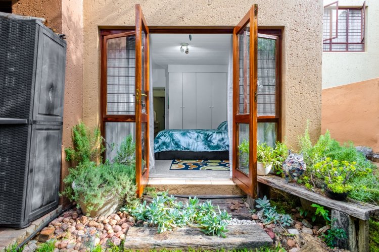 Nestled along the vibrant main strip of Douglasdale, this delightful 2-bedroom, 1-bathroom ground-floor unit offers the ideal lock-up-and-go lifestyle—perfectly positioned close to popular shops, restaurants, and everyday conveniences. Recently upgraded from traditional thatch to stylish Harvey tile roofing, the complex blends modern comfort with a relaxed, bush-lodge atmosphere, giving you that “holiday-at-home” feeling year-round. As you enter the home, you're welcomed by a spacious, fully modernised kitchen—the true heart of the home—boasting ample cupboard space, generous countertops, and an open-plan design that flows seamlessly into the living area. The lounge features a large sliding door that invites you out into your private garden: a serene oasis complete with a vegetable patch and lush greenery, ideal for quiet mornings or weekend entertaining. Both bedrooms are generously sized, with the main bedroom offering charming French doors that open directly onto the garden, filling the space with natural light and creating an effortless indoor-outdoor living experience. The full bathroom includes both a bath and shower, making the home perfectly suited for a first-time buyer or downsizer seeking comfort and functionality. The complex itself is an absolute standout, offering exceptional amenities including three swimming pools, a restaurant, a large play area for kids, and a fully equipped gym. Everything you need is just a stone's throw away, creating the perfect blend of convenience, leisure, and lifestyle. This is more than just a home—it's a retreat. Don't miss out on this gem in one of Douglasdale's most sought-after locations.