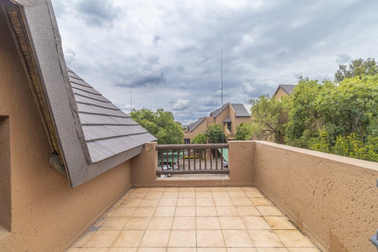 From arrival, the complex creates a welcoming impression with its paved driveways, garden features and mature trees. Excellent Security, electric fence, armed response, controlled access gates, providing peace of mind with 24-hour security guards patrolling. This sunny North facing apartment is warm in winter and spans 77sqm, featuring a comfortable open-plan lounge ideal for everyday living or entertaining. The practical kitchen is well laid out with an oven, counter space, cupboards and space for fridge and washing machine. Natural light fills the apartment, while exposed wood ceiling beams in the kitchen add character and a sense of space with the double volume ceiling The home offers 1 bathroom and 2 bedrooms with ample cupboard space. The main one is downstairs and one spacious loft bedroom upstairs leading out onto a balcony, providing a private retreat. The beautiful sunny, light filled loft area adds versatility and can also be used as a home office, study, bedroom with 5 cupboards giving additional living space. The apartment also features 2 balcony/patio, perfect for enjoying morning coffee or relaxing in the evening. The unit includes one undercover carport and an extra parking space. The apartment is also fibre-ready, ensuring modern connectivity. The complex has a back up Water tank of 150,000 litres for complex residents use. Prepaid electricity and water.